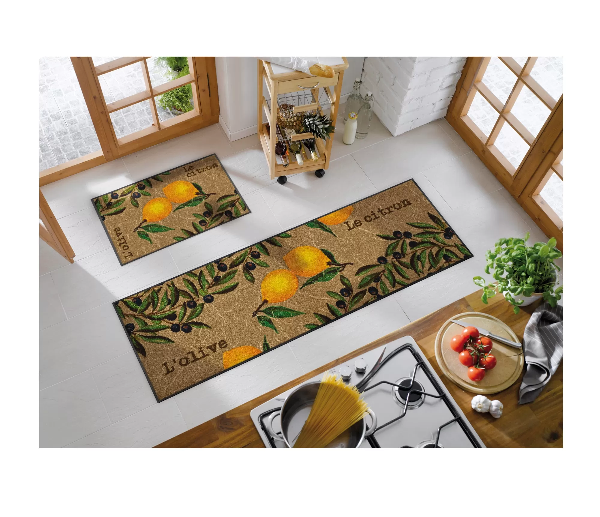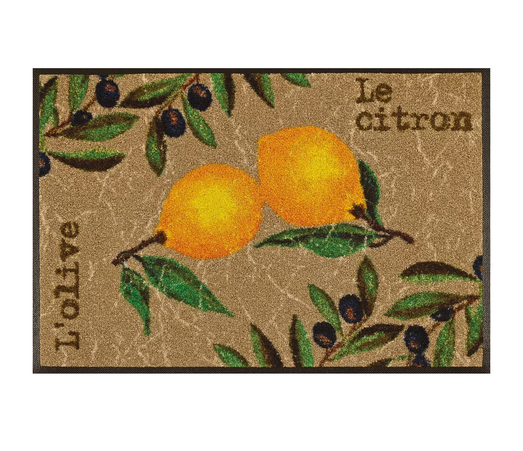 Mazgājamais durvju paklājs Le Citron izceļas ar vieglu, saulainu dizainu, kas iedvesmots no Vidusjūras reģiona estētikas. Spilgti citronu motīvi, zaļi zari un smalki dekoratīvi elementi rada dabiskuma un svaiguma sajūtu.