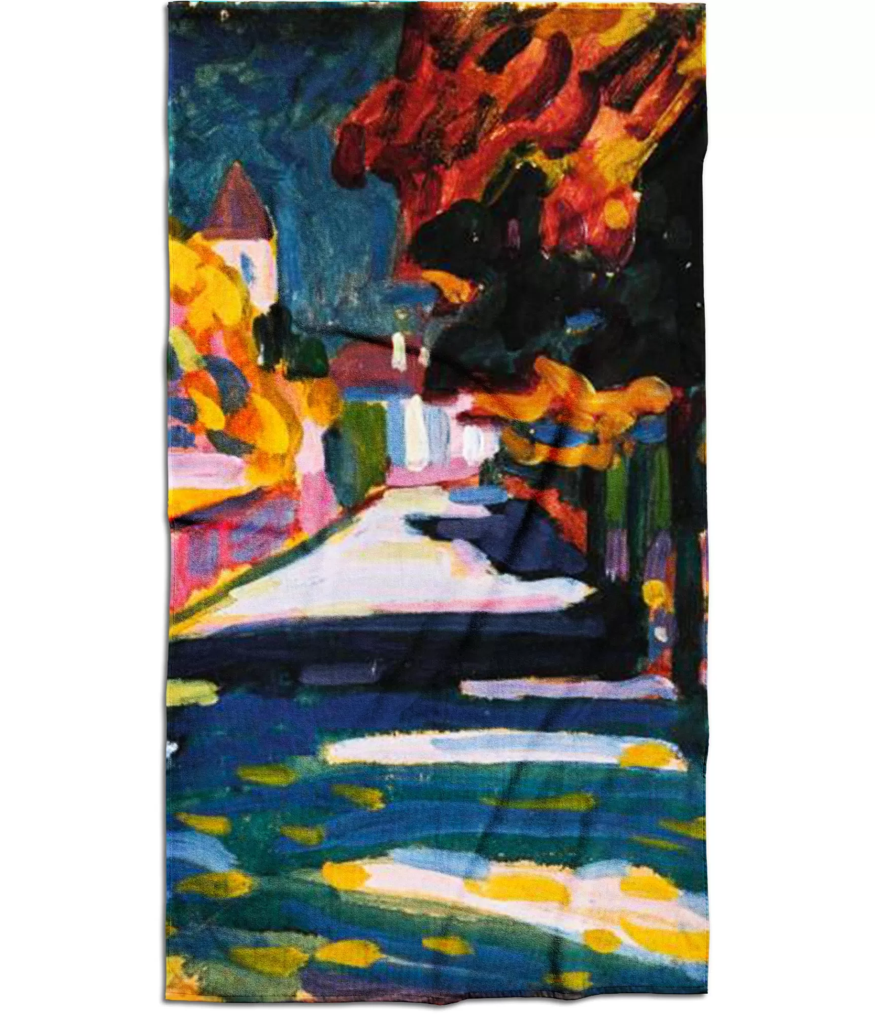 Šir vannas istabas rokturisšports iemieso ne tikai funkcionalitāti, bet arī rudens krāsu dzejas pārtapšanu audumā – šī ir Vasilija Kandinska „Rudens Bavārijā“ interpretācija, kas ekspresionisma otu apstrādi pārnes uz ikdienas lietošanas priekšmetu. Spilgti kontrastējošās dzeltenās, sarkanās, zilās un tumši zaļās krāsas straumes rada iespaidu, it kā jūs skatītos uz krāsu virpulī noslīkušu rudens ainavu ar bokteli, kas nirst tālumā. Ainava izskatās tā, it kā tā tiktu novērota iš kustīga kuģa, kur triepieni vairs nekļūst par detaļām, bet gan par sajūtu viļņiem. Katra līniju kustība – tas ir emocionāls reflekss, un krāsas pulsē kā dzīva rudens melodija.