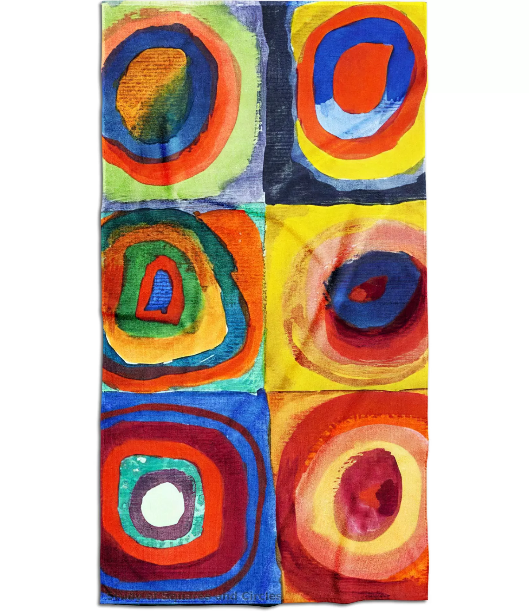 Šio rokas dizains ir uzticīgs Vasilija Kandinska oriģinālajam darbam "Krāsu pētījums: kvadrāti ar koncentriskiem apļiem", taču atveidots tā, lai tas kļūtu tuvs modernam ška estētikam. Krāsas šeit ir ne tikai spilgtas – tie ir kontrastējoši, uzkrītoši un aicinoši izskatīties iš tuvāk. Zilās un sarkanās formas apakšējā daļā kontrastē ar augšējo kvadrātu brīvāku noskaņu, kas vizuāli saglabā roku dinamisku. Išieklāšana kvadrātos ļauj dizainam dabiski saskanēt ar divu slāņu rokušdaivas struktūru – viena puse ir presei, otra – baltajai frotē kokvilnai, kas švelnišķīgi pielīp pie ādas pēc peldēšanas.
