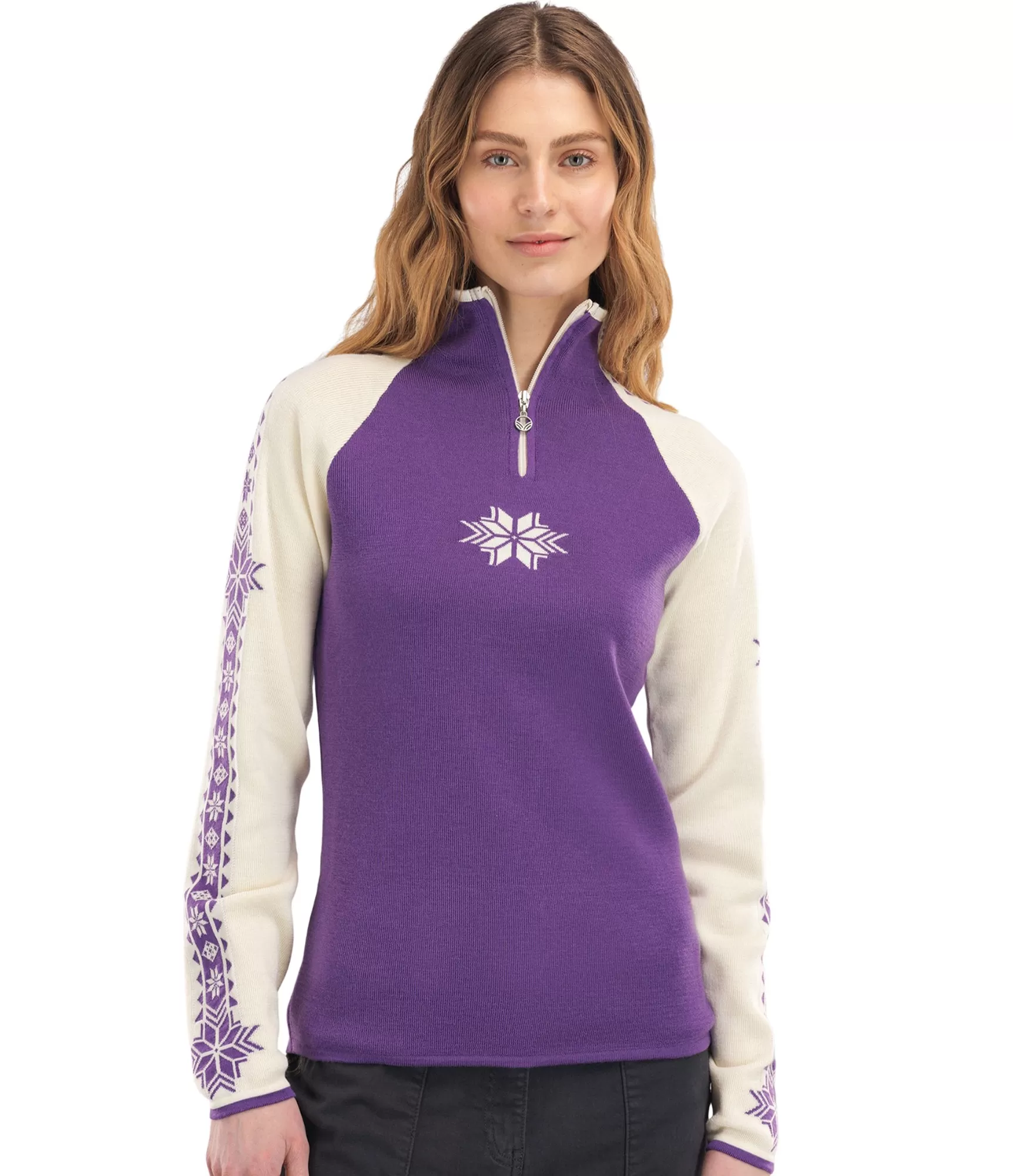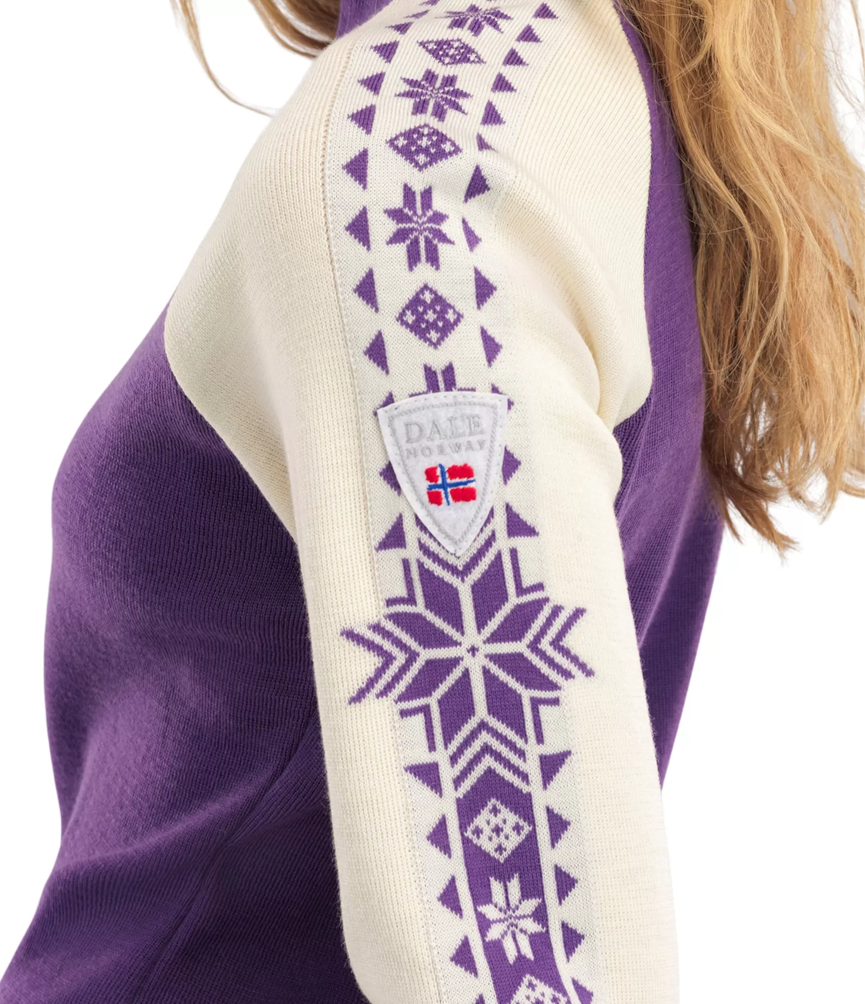 Dale of Norway Geilo Fem tumši violets, gandrīz balts merino vilnas džemperis. Tavs unikālais stils!