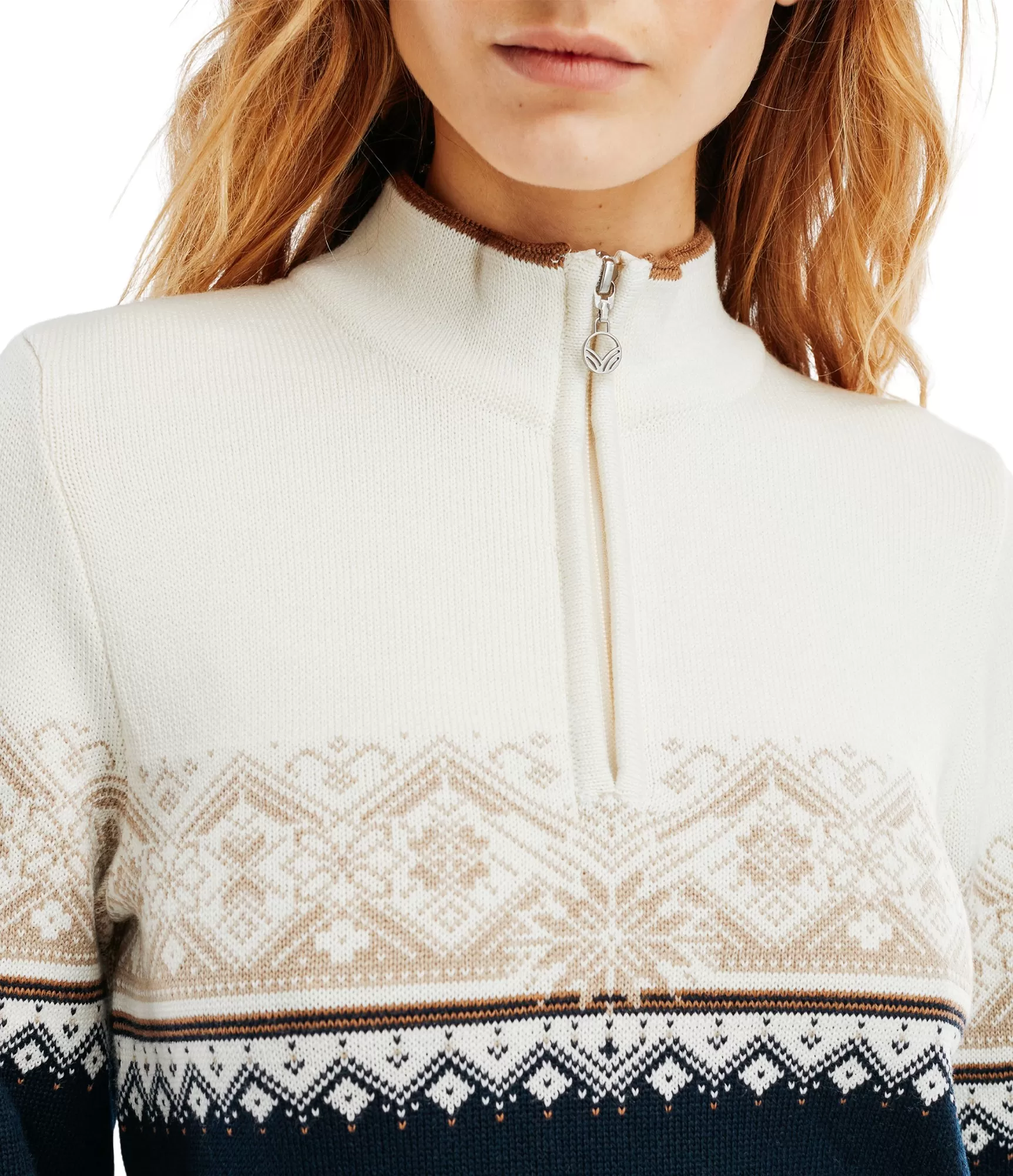Mīksts, silts un viegli kombinējams - Dale of Norway Moritz Fem džemperis ir klasisks džemperis, kas apvieno skandināvu dizainu un augstākās kvalitātes merino vilnu. Izgatavots no 100% ādai maigas merino vilnas, kuras šķiedras izmērs sasniedz tikai 20,5 mikronus, šis džemperis ir ārkārtīgi mīksts, elastīgs un patīkams valkāšanai pat tieši uz ādas.