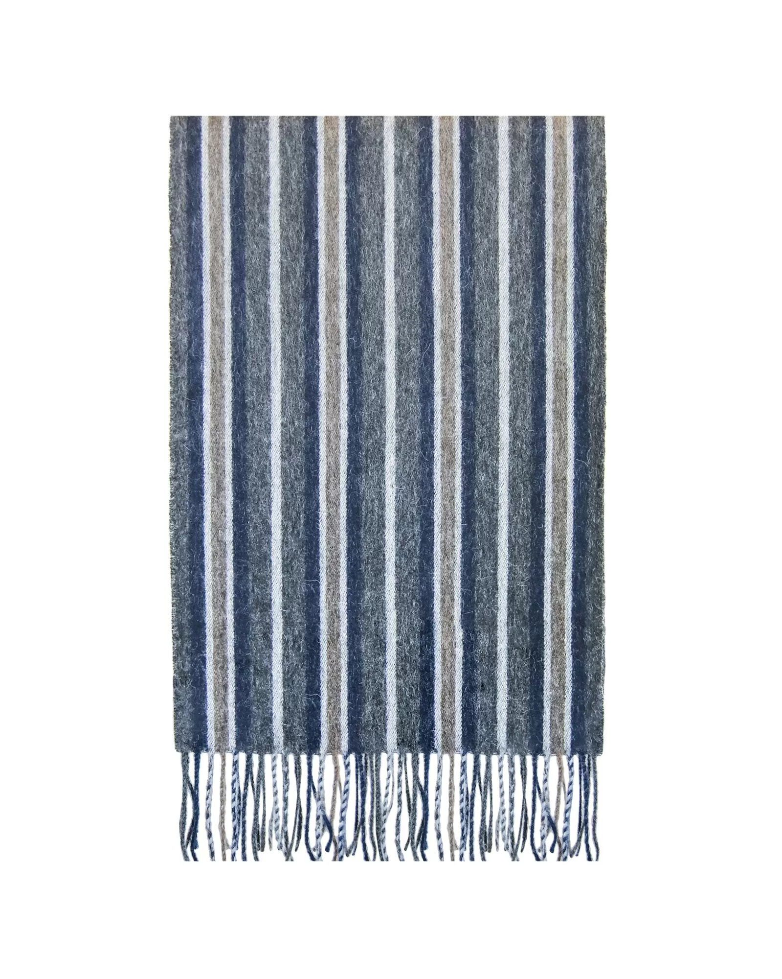 Zilo, tumši pelēko un brūno toņu salikuma „Blue Stripes“ baby alpaca šalle ir aksesuārs vīrietim, kurš meklē ideālu balansu starp klasiku un mūsdienīgu pilsētas stilu. Vertikālās krāsu joslas izkārtotas tā, lai radītu kārtīgu, smalki izteiksmīgu ritmu: dziļais zilais tonis piešķir tīrību un modernumu, tumši pelēkais veido struktūru, bet maigais brūnais piešķir siltumu un minimālisma raksturu. Kopējais tēls ir atturīgs, bet pietiekami izteiksmīgs, lai papildinātu gan formālus, gan ikdienas tērpus.