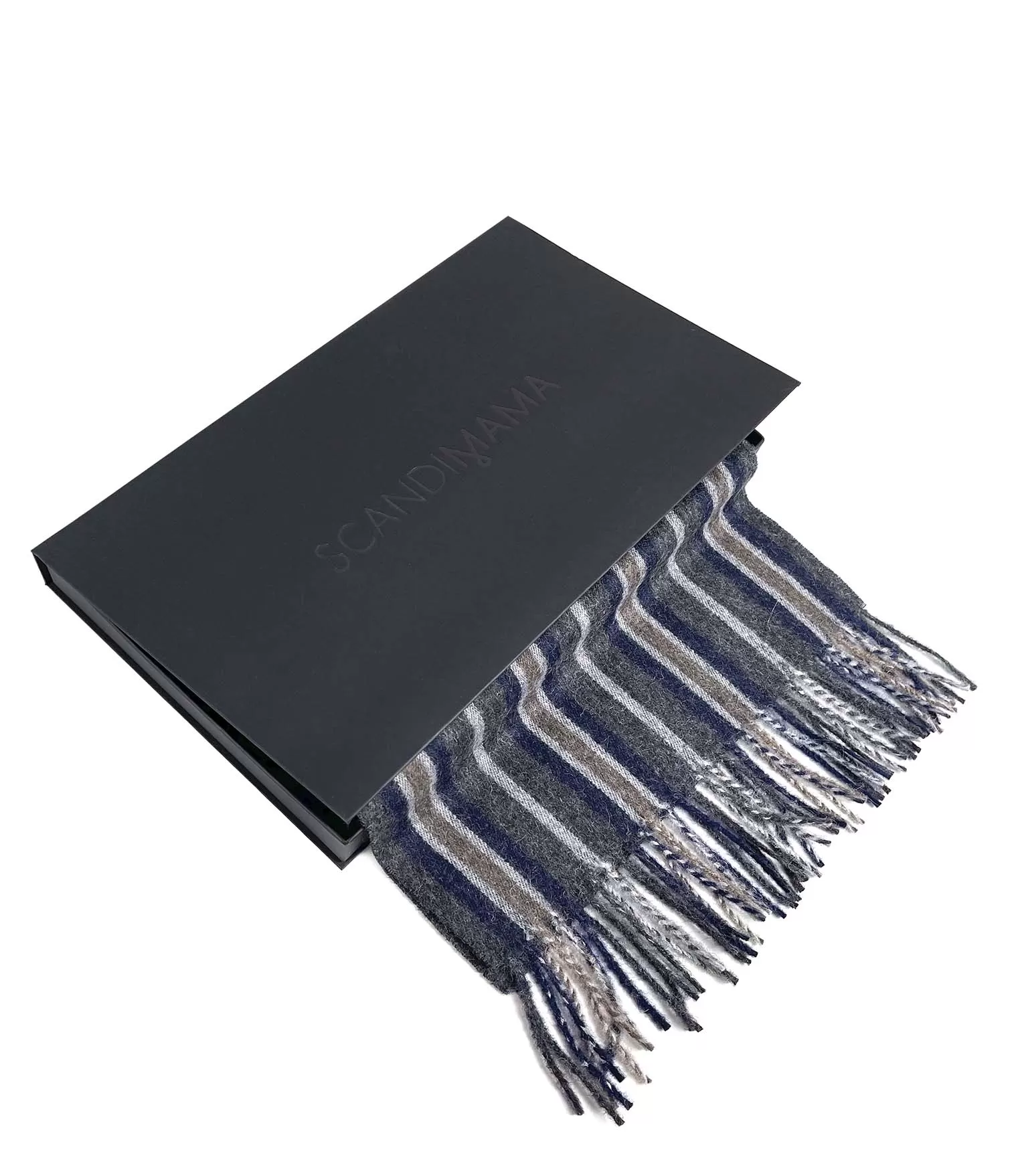 Zilo, tumši pelēko un brūno „Blue Stripes“ šalli iespējams dāvināt vīrietim gan dzimšanas dienā, gan jubilejā, gan Ziemassvētkos. Krāsu salikums ir universāls dažāda vecuma un stila vīriešiem, savukārt elegantā melnā dāvanu kaste piešķir dāvanai solīdumu un gatavības iespaidu.