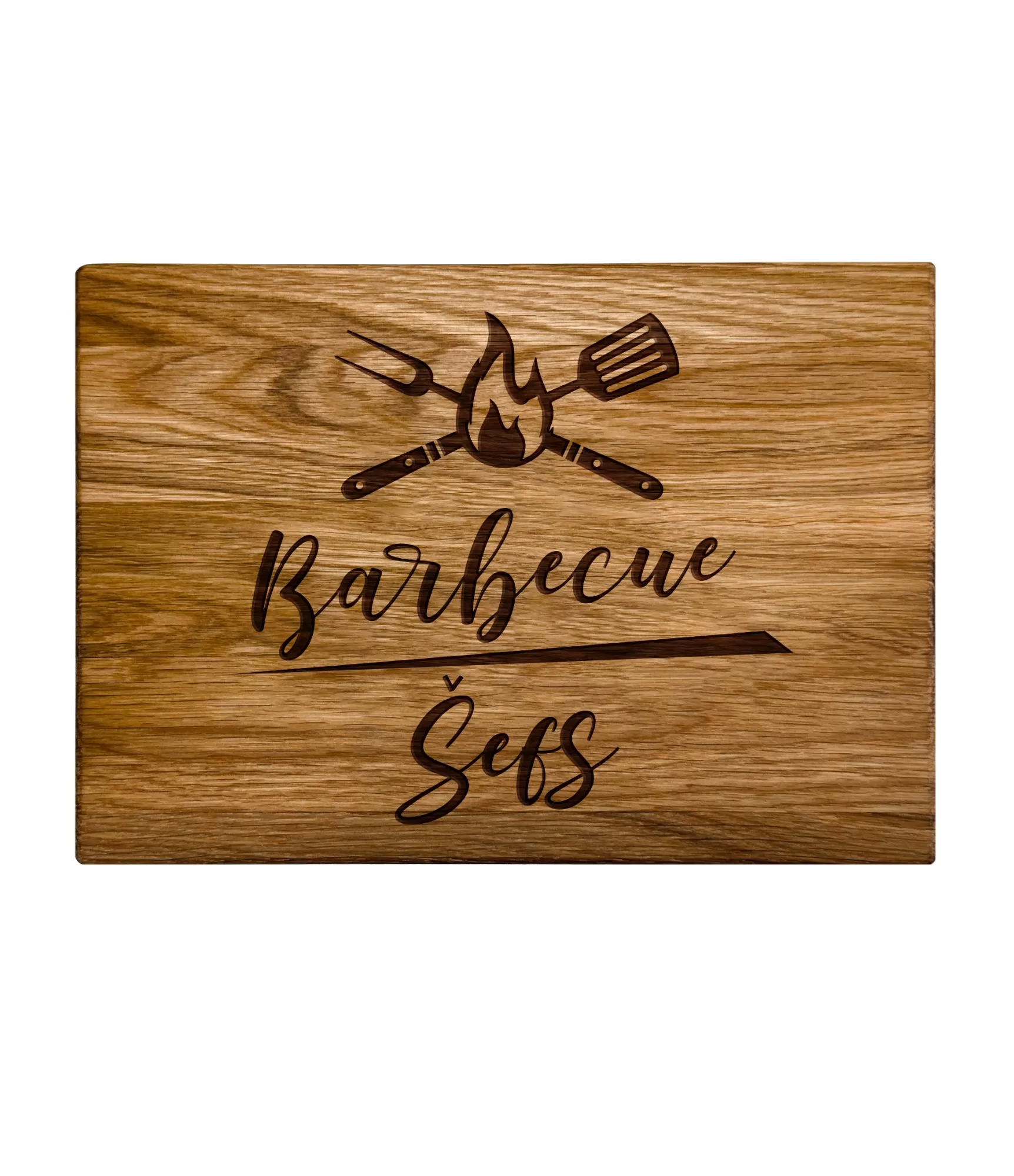 Griešanas dēlis "Barbecue Šefs CB-26P20" piedāvā skaidru dizainu ar grilēšanas rīkiem un uzrakstu "'Barbecue Šefs". Šis motīvs ir ideāls tiem, kas mīl grilēt gaļu vai pavadīt laiku pie grila. Produkts izskatās ciets un kārtīgs, padarot to ne tikai par noderīgu rīku, bet arī par stilīgu akcentu jūsu virtuvē vai terasē. Ērtais izmērs 30x21x2 cm ļauj viegli izmantot dēli gan pārtikas sagatavošanai, gan jau pagatavoto ēdienu pasniegšanai.