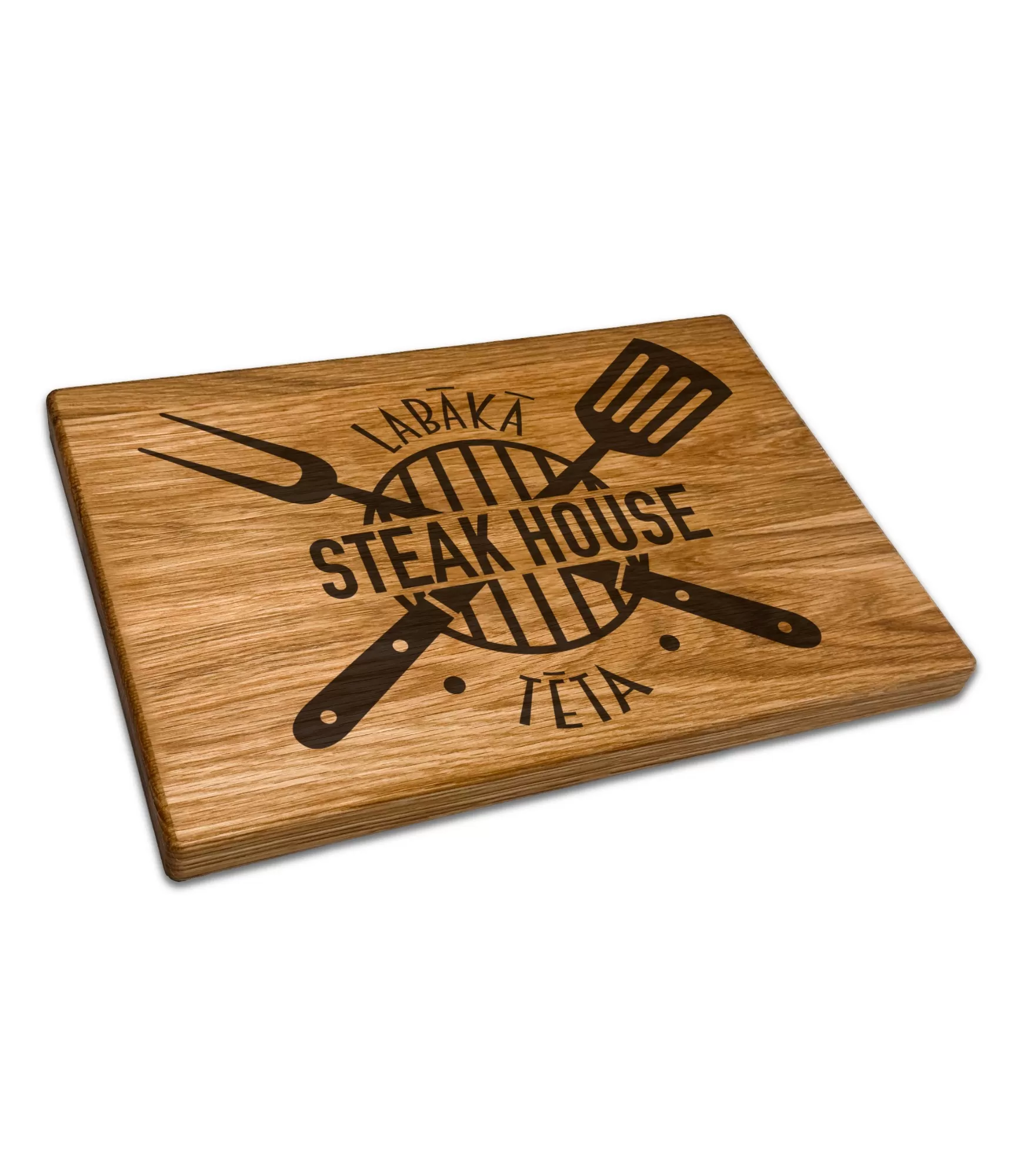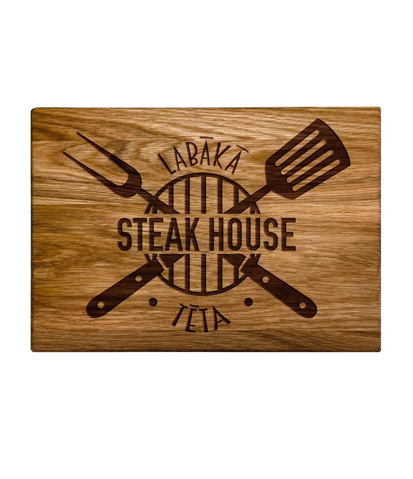 Oriģinālā griešanas dēlis "Steakhouse CB-26P19" izceļas ar savu izturīgo un skaidro dizainu, kas iezīmē grila rīku motīvu. Kompozīcija atgādina patiesu steiku zonu, uzreiz radot asociāciju ar garšīgu ēdienu un labām reizēm. Tas ir ne tikai praktisks produkts virtuvei vai terasei, bet arī stilīgs akcents, kas piešķir raksturu videi. Ideāli piemērots gan ikdienas lietošanai, gan gaļas ēdienu vai uzkodu pasniegšanai.
