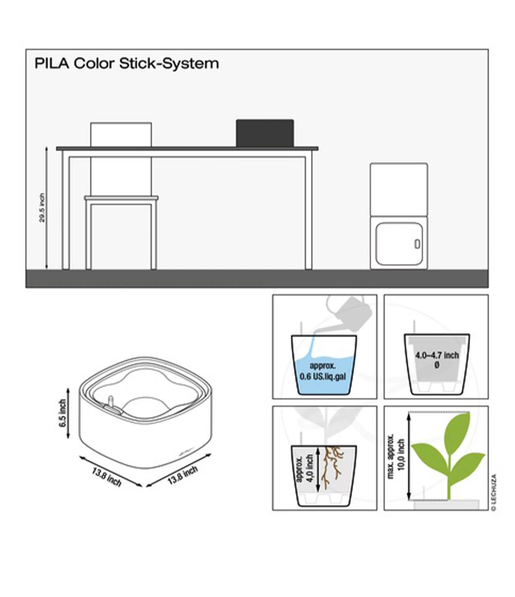 Visi LECHUZA puķu podi nāk ar ārējo puķu podu un laistīšanas sistēmu, kas nodrošina labāku augu augšanu.