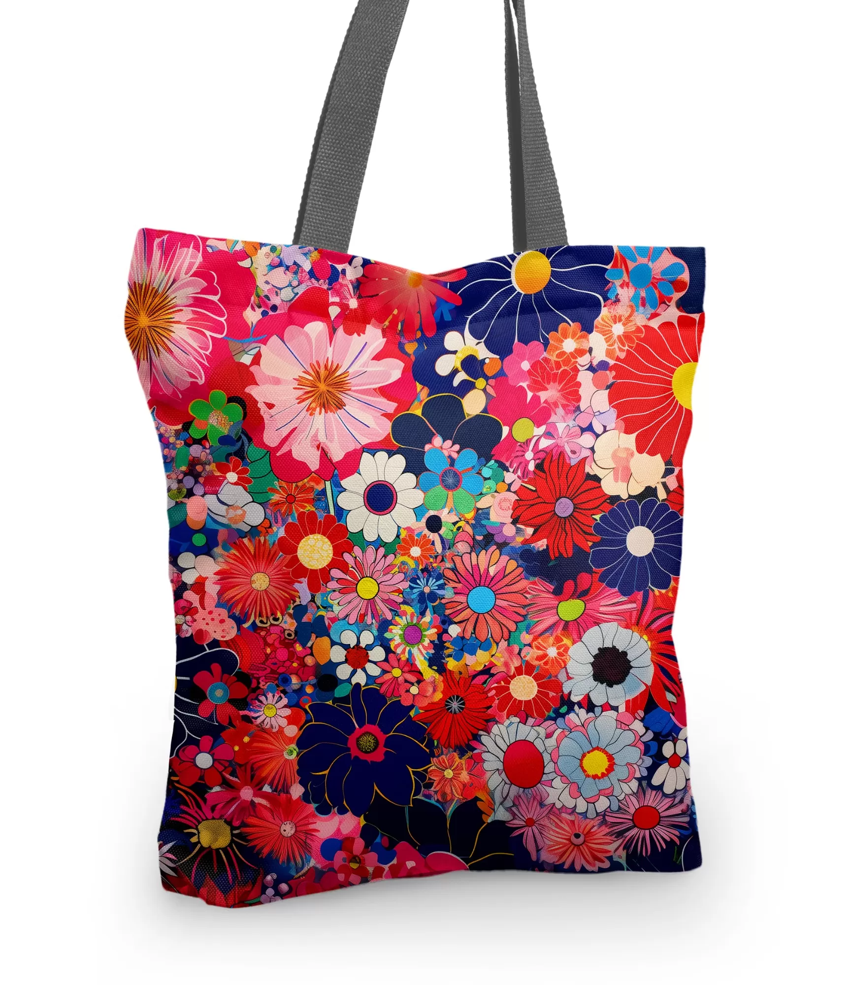 Rokassomu izgatavoja iš 100% poliestera audekls – spēcīgs, praktisks un ideāls ikdienas audums. Krāsains ziedu raksts tiek uzklāts ar sublimāciju, tāpēc krāsas neizbalē, pat mazgājot 30°C. Garie kokvilnas rokturi ļauj ērti pārnēsāt somu pār plecu, bet iekšējā kabata un rāvējslēdzējs nodrošina papildu drošību jūsu mantām.