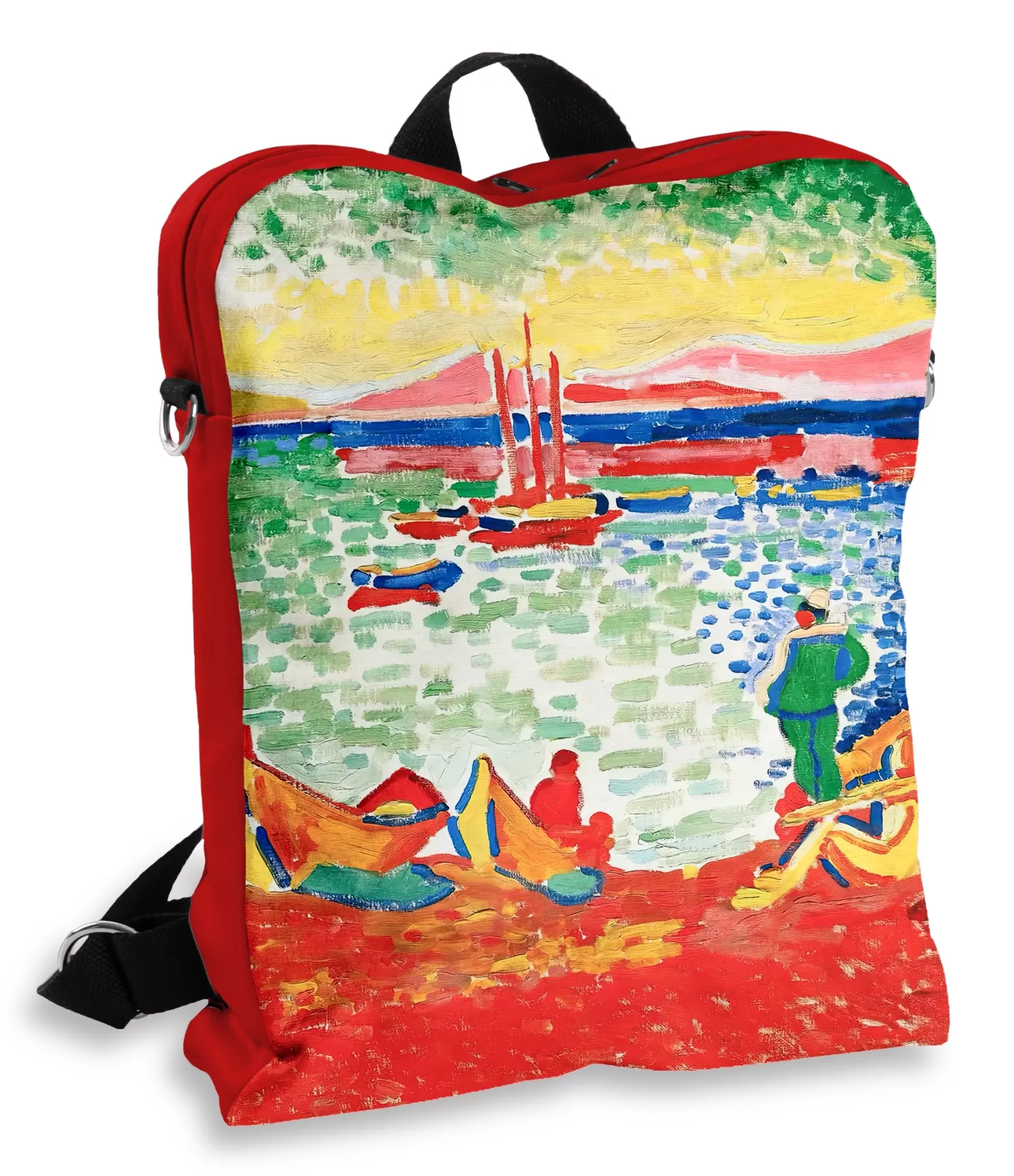 Ši mugursoma – tas ir vairāk nekā aksesuārs. Tas ir krāsu, mākslas un emociju manifests, dzimis iš slavenais franču fovists André Deraina glezna "Laivas Koliūrā". Tā paredzēta sievietei, kura nebaidās no spilgtām krāsām, novērtē mākslu un vēlas vairāk radošuma savā ikdienā. Mugursoma ir ne tikai praktiska, bet arī pārsteidzoši izturīga. kā ainava, ko varat ņemt līdzi katru dienu.