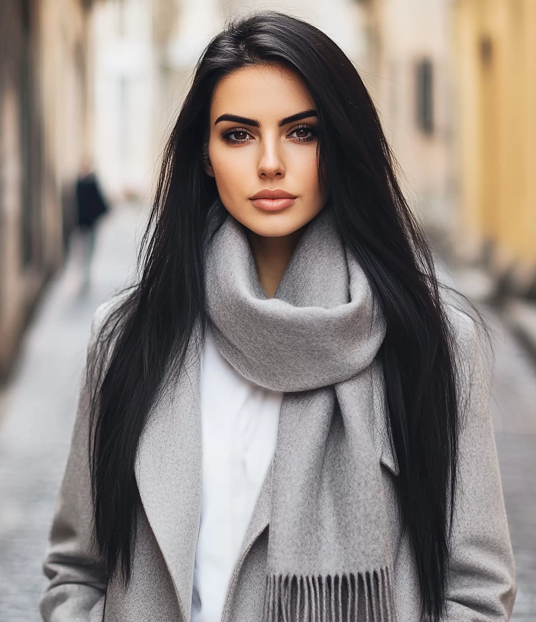 Pelēkā “Medium Grey” krāsa ir viena no skaistākajām izvēlēm sievietēm, kurām patīk smalkas, tīras un viegli pieskaņojamas garderobes detaļas. Tas ir klasisks tonis, kas izskatās nevainojami gan pie tumšākiem, gan pie gaišākiem virsdrēbju toņiem. Pelēkā lieliski sader ar melnu, baltu, smilšu, zilu, brūnu un pat pasteļtoņiem – tāpēc šāda šalle kļūst par īpaši ērtu izvēli, kad vēlas vienu akcentu, kas der visiem gadījumiem. Kombinēta ar vilnas mēteļiem tā izskatās eleganti un kārtīgi, bet ar brīvā laika džemperi vai žaketi piešķir mājīgumu un minimālisma estētiku.