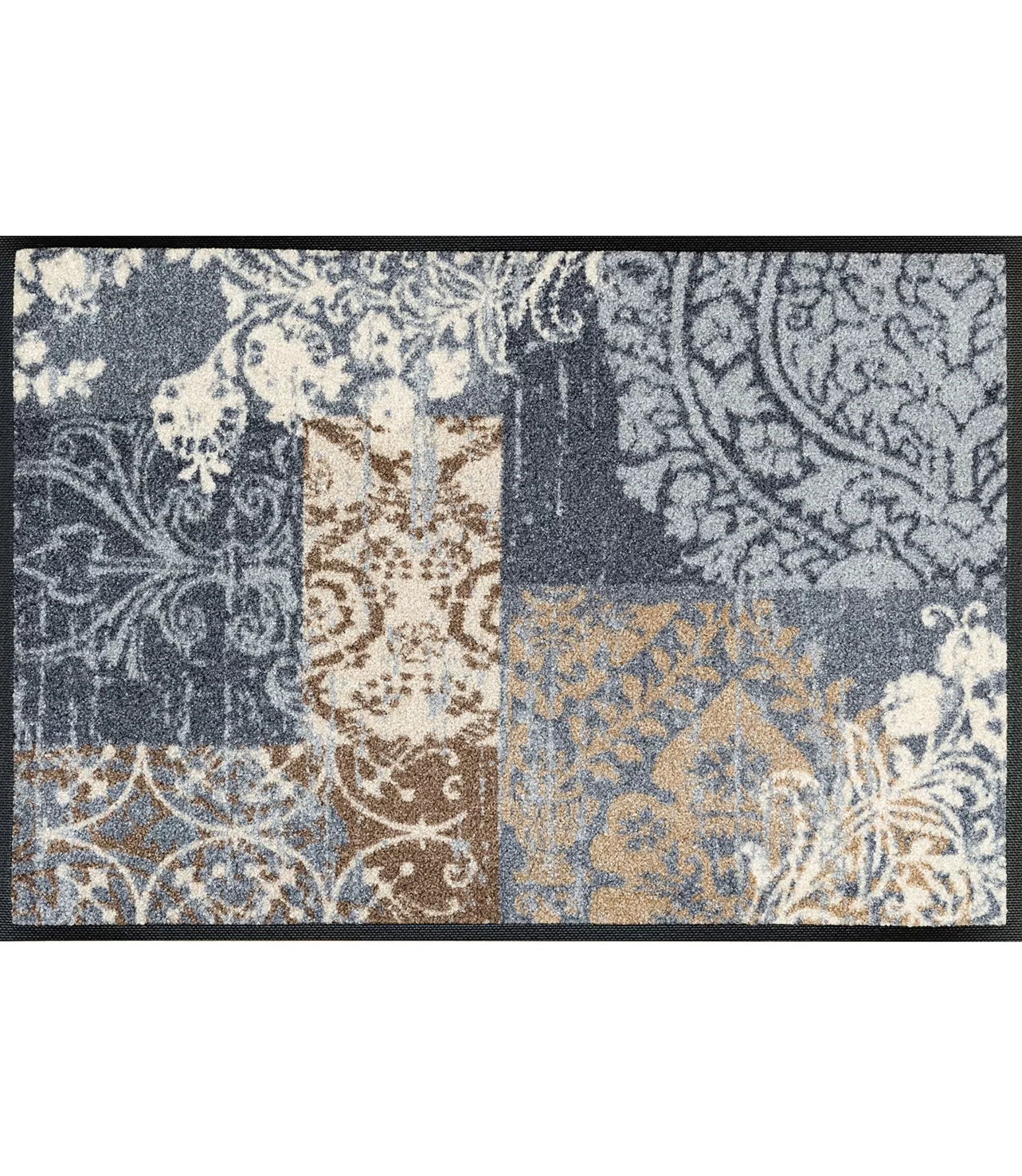 Durvju paklājs „Armonia Grey“ izceļas ar elegantu, klasisku rakstu iedvesmotu dizainu, kas atgādina dekoratīvo audumu ornamentus. Dažādu rakstu fragmenti saplūst vienotā kompozīcijā, kur harmoniski saskan maigas līnijas un smalki motīvi.