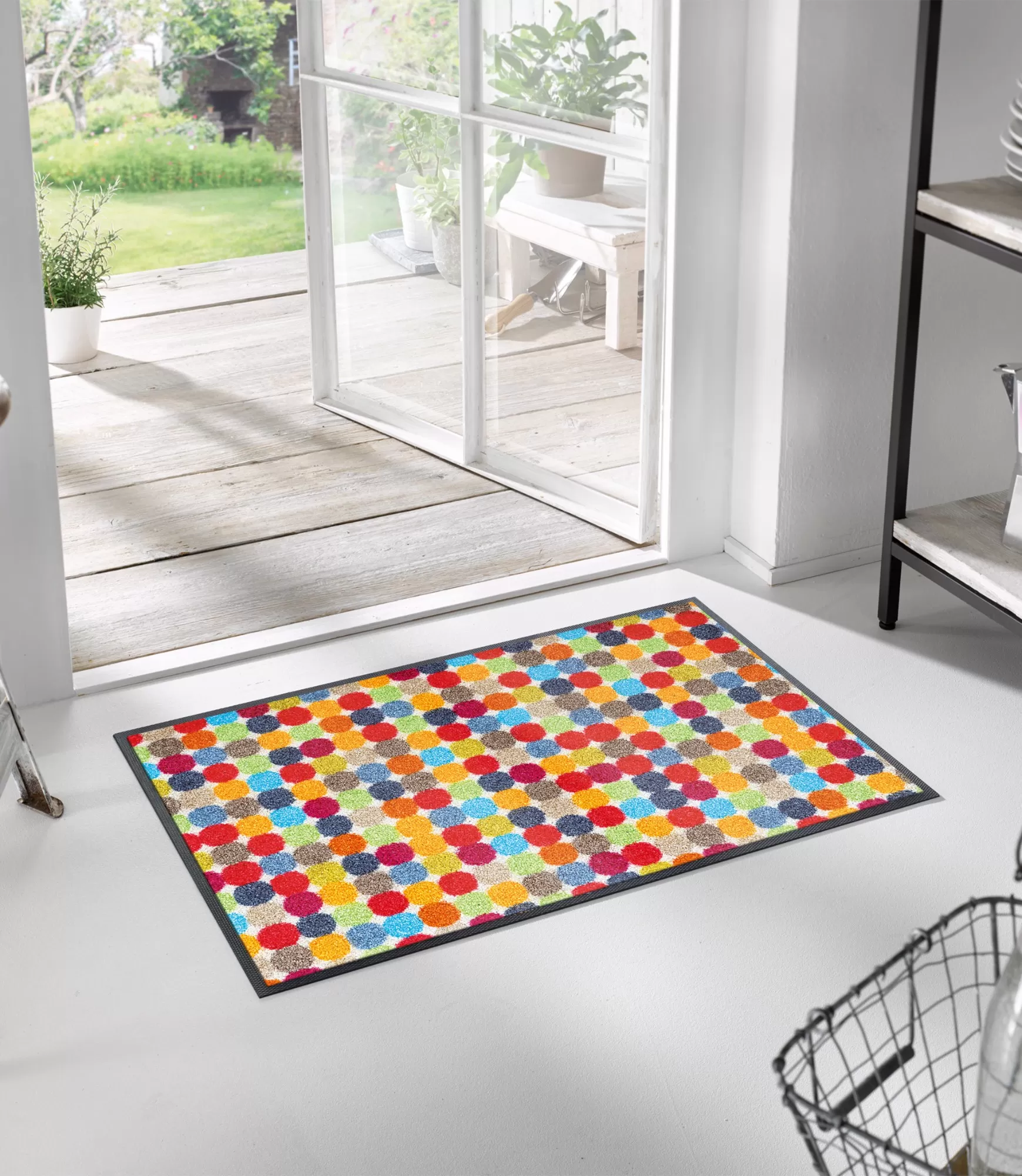 Durvju paklājs Mikado Dots ir izvēle tiem, kuri vēlas piešķirt vairāk dzīvīguma savas mājas ieejai. Smalkie, daudzkrāsainie punkti veido dinamisku, bet vienlaikus harmonisku rakstu, kas viegli iederas gan gaišos, gan tumšākos interjeros. Šāds dizains ir ne tikai dekoratīvs – tas arī vizuāli “paslēpj” ikdienas lietošanas pēdas, tādējādi ilgāk saglabājot kārtīgu izskatu.