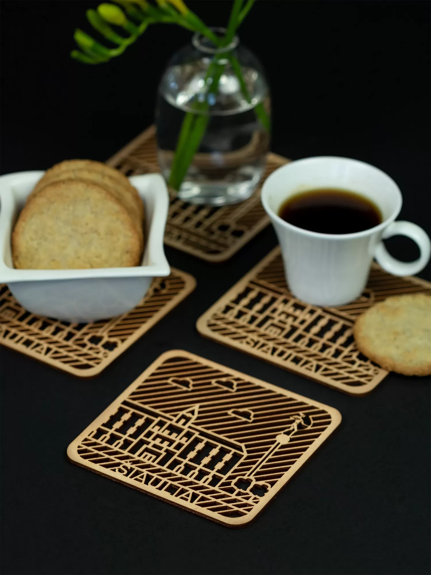 Baudiet kafiju vai tēju ar stilīgiem un elegantiem paliktņiem — tie lieliski izskatīsies uz jūsu galda un pasargās tā virsmu no karstuma un mitruma.