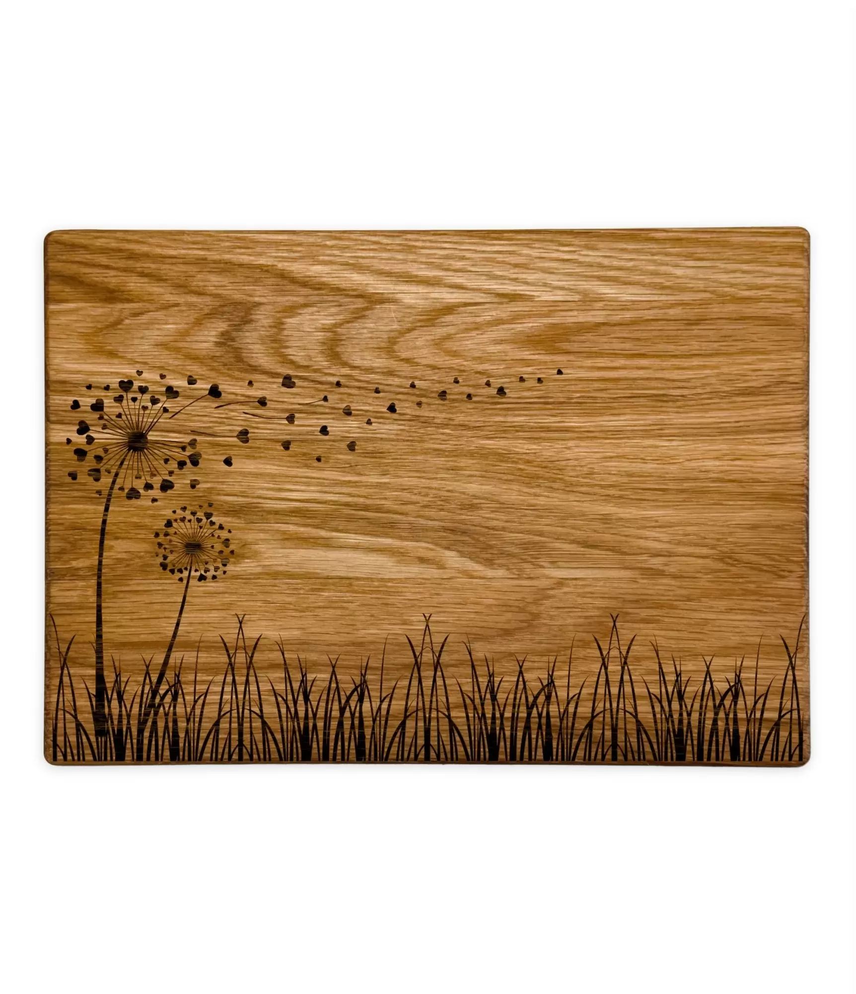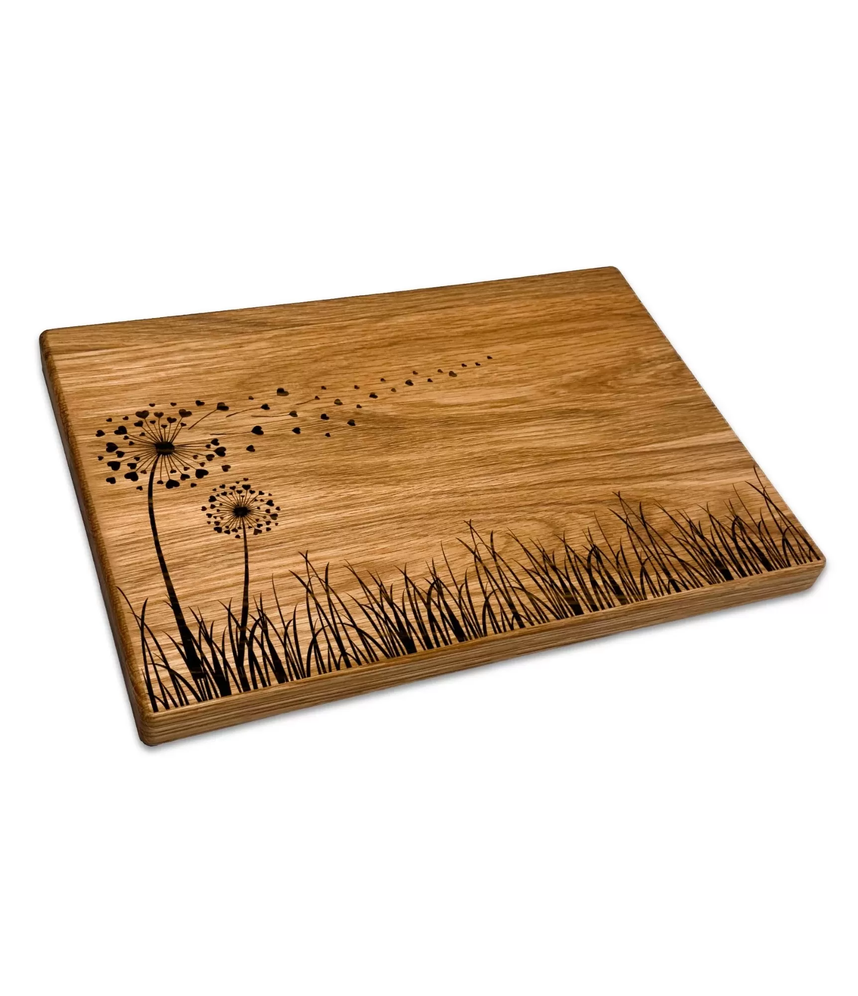 Koka griešanas dēlis "Dandelion CB-26P5" izceļas ar vieglu un estētisku pieneņu dizainu, kas piešķir produktam smalkumu un dabisku skaistumu. Pa virsmu izkliedētās pieneņu sēklas, ko it kā aiznes vējš, rada viegluma un kustības sajūtu. Tas nav tikai praktisks virtuves priekšmets, bet arī stilīgs akcents, kas ikdienas vidē ienes vairāk mājīguma. Dēli var izmantot no vienas puses ēdiena gatavošanai, bet no otras – ērtai uzkodu pasniegšanai vai ēdienu prezentēšanai.
