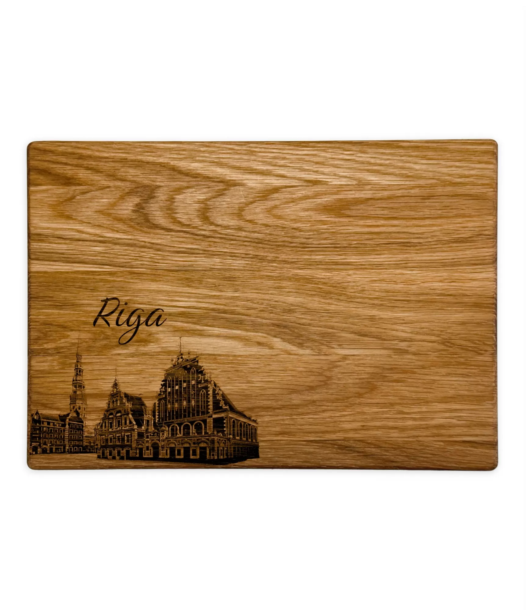 Iegūstiet gravētu griešanas dēli "Eiropas galvaspilsētas Riga CB-2653", kas ir elegants suvenīrs, kas iemūžina Latvijas galvaspilsētas simbolu – Melno galvu nams. Detalizētā Rīgas Vecpilsētas arhitektūras gravējums piešķir šim produktam greznības un vēsturiskās vērtības sajūtu, padarot šo dēli ne tikai par praktisku virtuves piederumu, bet arī par izteiksmīgu akcentu ēdiena sagatavošanas telpās. Tas ir lielisks izvēle, lai pievienotu īpašu noskaņu galdam un estētiski pasniegtu dažādus uzkodas jūsu ģimenei vai viesiem.