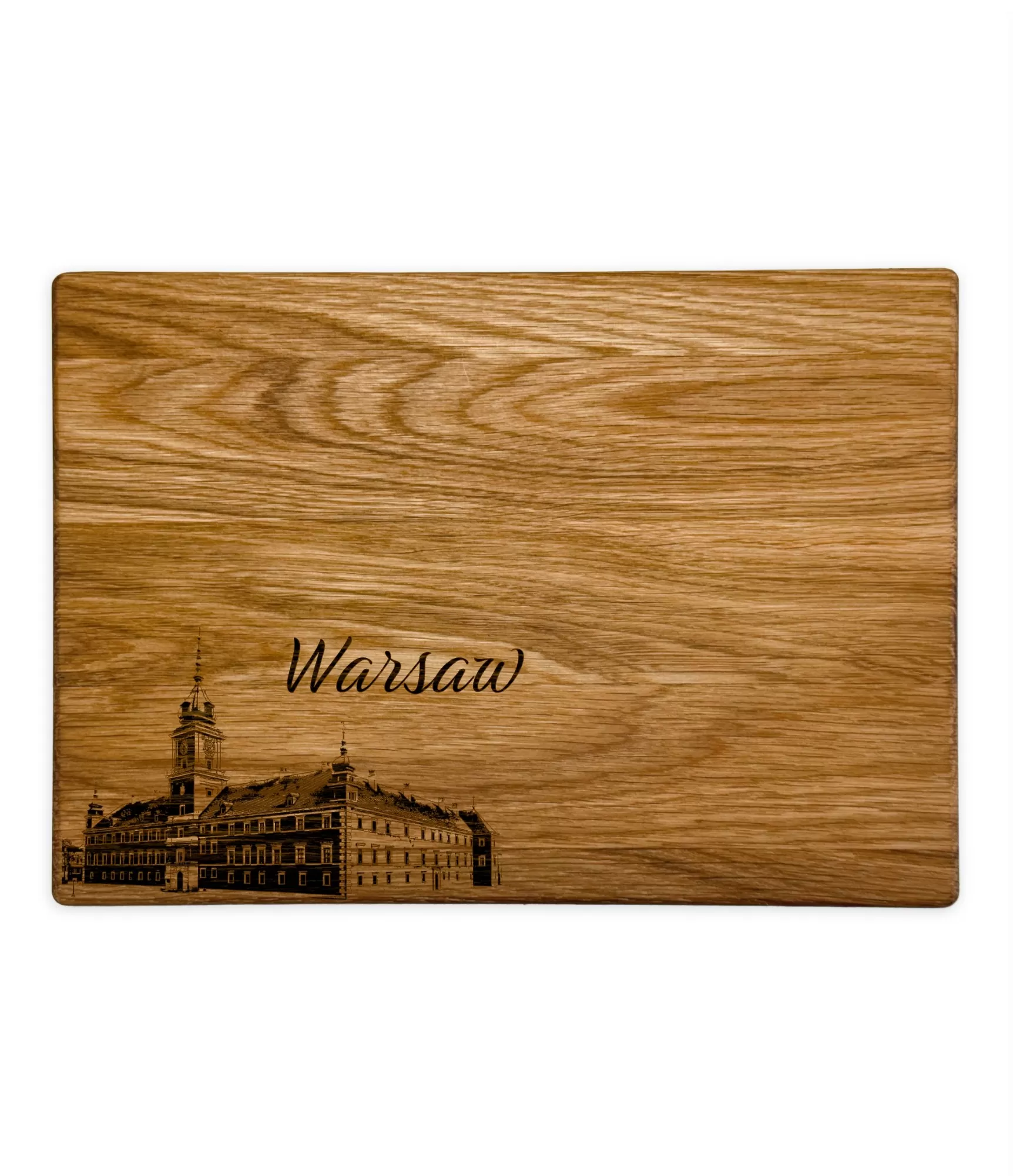 Koka griešanas dēlis "Eiropas galvaspilsētas Warsaw CB-2612" izceļas ar elegantu dizainu, kas smalki attēlo pilsētas arhitektūras siluetu un uzrakstu "Warsaw". Tas ir ne tikai funkcionāls virtuves rīks, bet arī stilīgs virtuves akcents, kas piešķir siltumu un unikālu raksturu interjeram. Dēli var izmantot gan pārtikas sagatavošanai, gan pasniegšanai – tas izskatās lieliski uz galda un piešķir videi vairāk rakstura. Dizains ir iedvesmots no pilsētas vēstures un autentiskās atmosfēras.