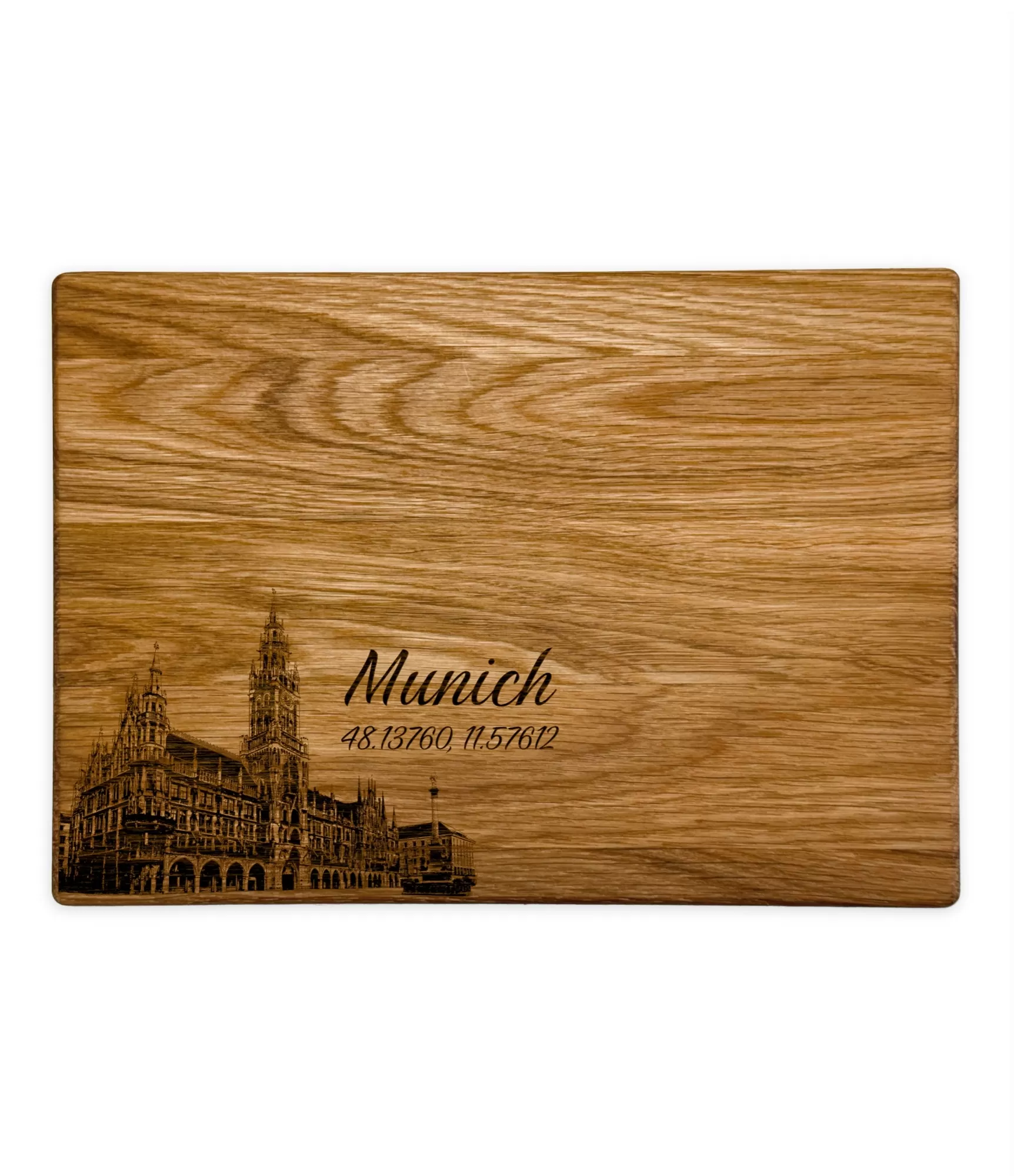 Praktiskā griešanas dēlis "Eiropas pilsētas Munich CB-2633" ir unikāls suvenīrs, kas meistarīgi apvieno Minhenes arhitektūru ar precīziem ģeogrāfiskiem datiem. Iedegtais attēls ar Marienplatz un pilsētas rātsnamu, kā arī norādītās koordinātas piešķir šim produktam modernu raksturu, padarot to par izteiksmīgu virtuves detaļu. Tas ir lielisks veids, kā pievienot īpašu atmosfēru galdam, pasniedzot našķus viesiem vai atceroties ceļojumu mirkļus.