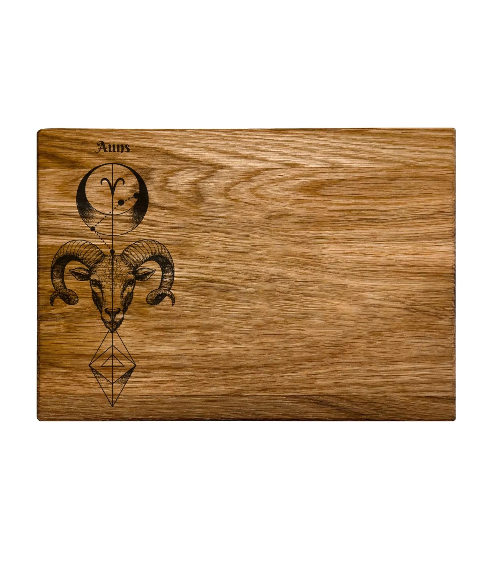 Šis izturīgais līmētais ozola dēlis ir praktiska izvēle tiem, kas meklē personalizētu dāvanu. Koks ir ārkārtīgi izturīgs, nodrošinot, ka produkts ilgi kalpos, kamēr kvalitatīvais eļļas pārklājums aizsargā virsmu no mitruma un palīdz uzturēt tīrību. Produkts ir iepakots stilīgā dāvanu kastē, padarot to par gatavu pārsteigumu dzimšanas dienā vai neaizmirstamu pateicību kādam, kurš novērtē aktīvu dzīvesveidu. Īpašo unikālumu pastiprina iespēja gravēt jūsu izvēlēto tekstu blakus Auna simbolam. Tas var būt vārds, svarīga datuma vai frāzes, piemēram: "Patiesais Auns," "03.21 – vienmēr pirmais," "Auns virtuvē," vai "Uguns enerģija." Šāds personisks elements iepriecinās ikvienu spēcīgas rakstura īpašnieku.