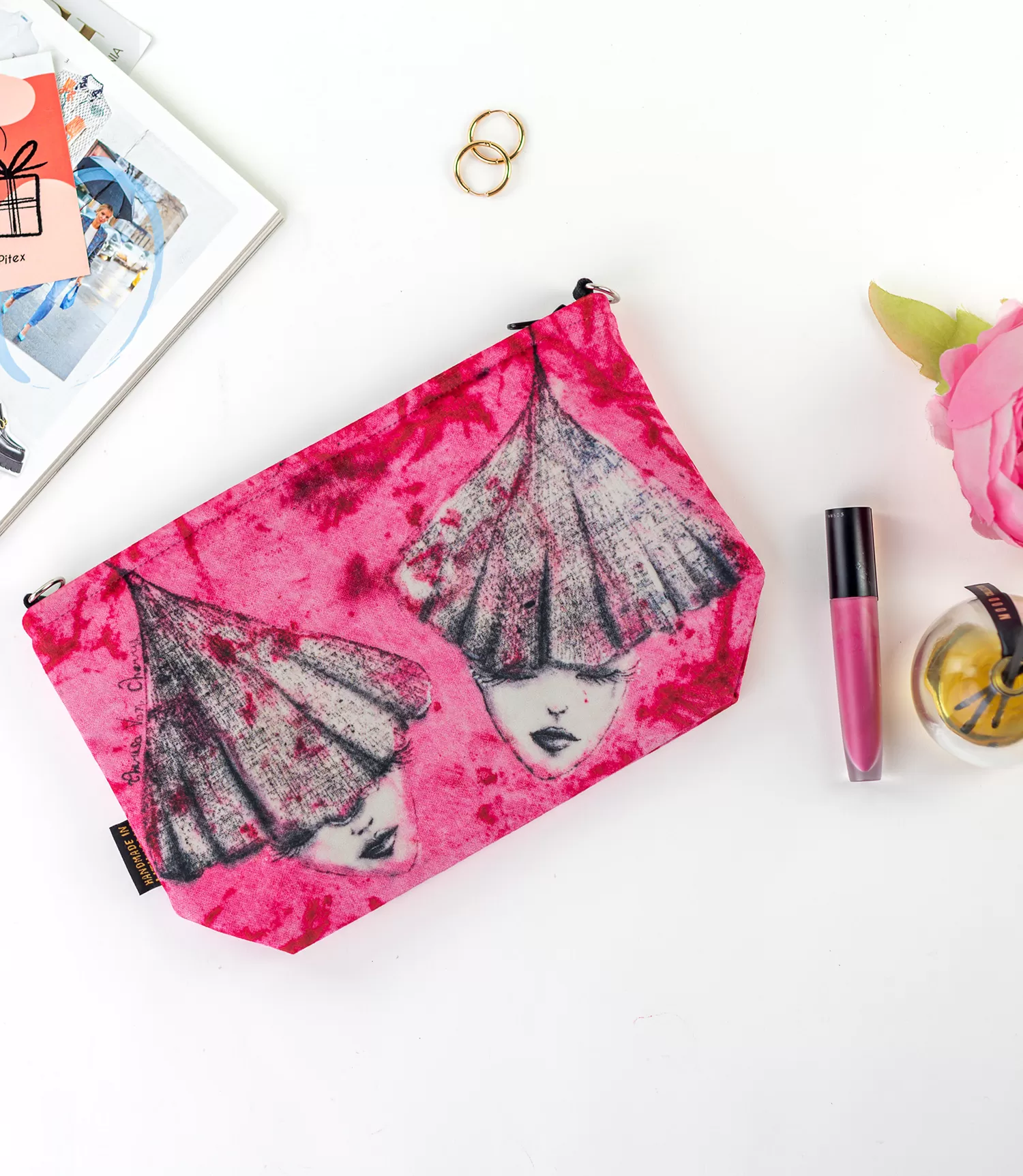 Stilīgajai kosmētikas somiņai ir iekšējā odere, rāvējslēdzējs un divi metāla gredzeni. Gredzeni ir nepieciešami, ja nolemjat izveidot rokassomu no kosmētikas somiņas (siksniņa nav iekļauta).