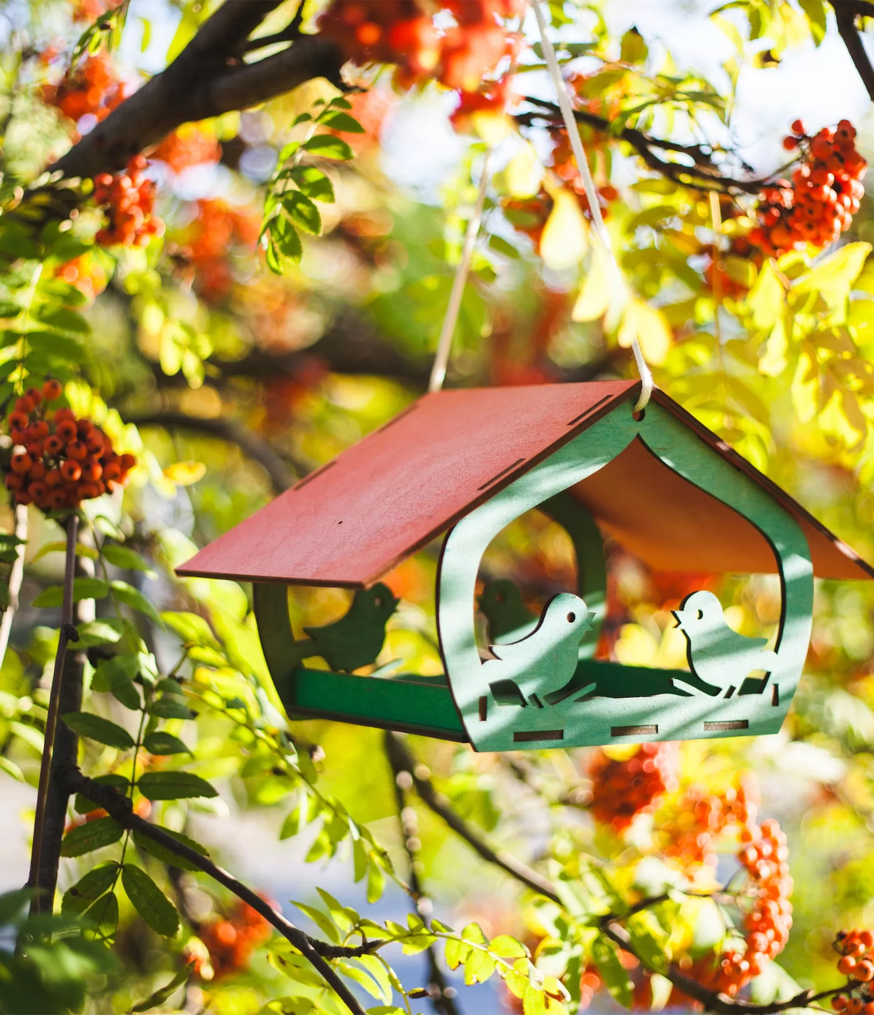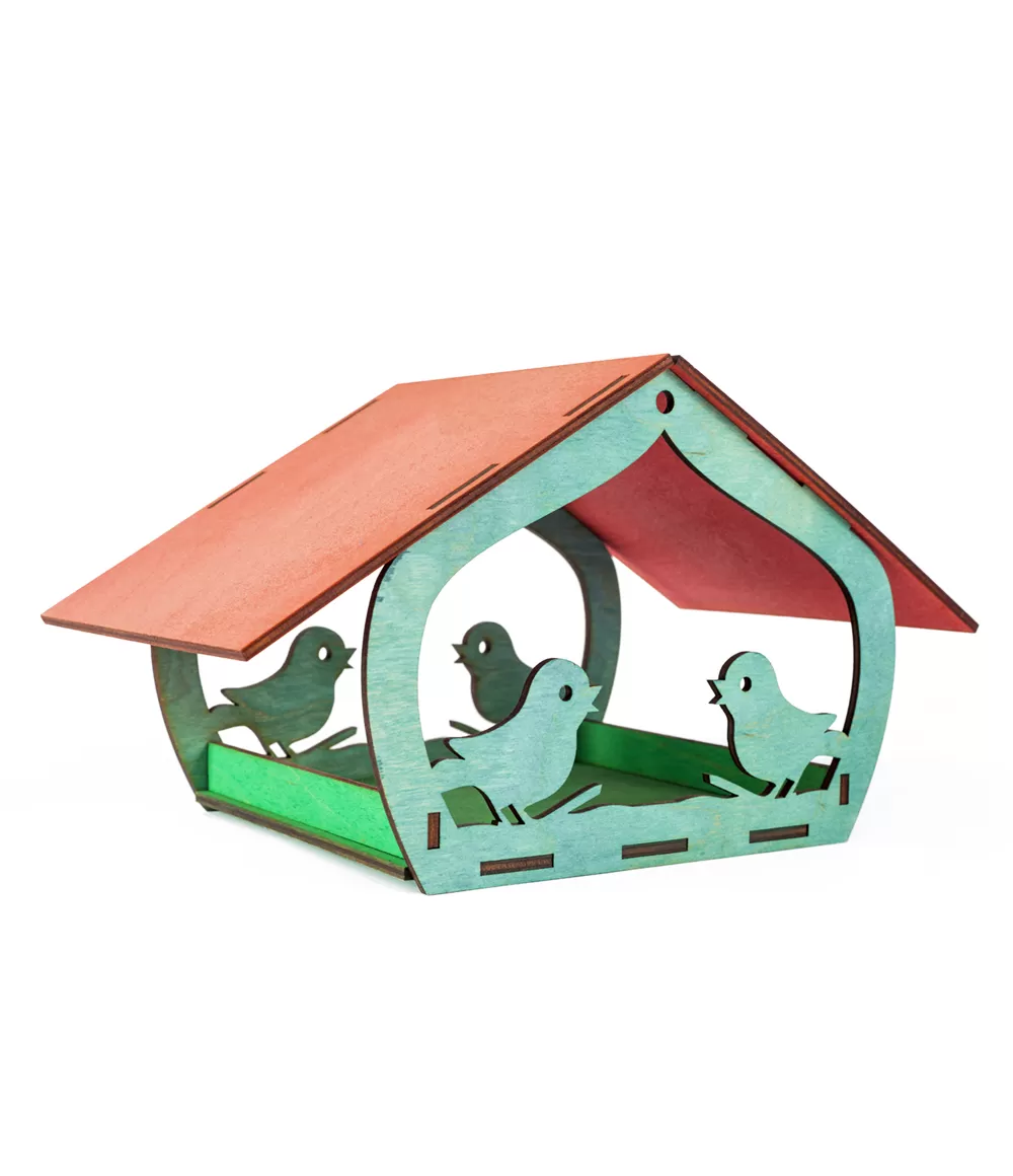 Krāsaina koka putnu barotava ar jumtiņu