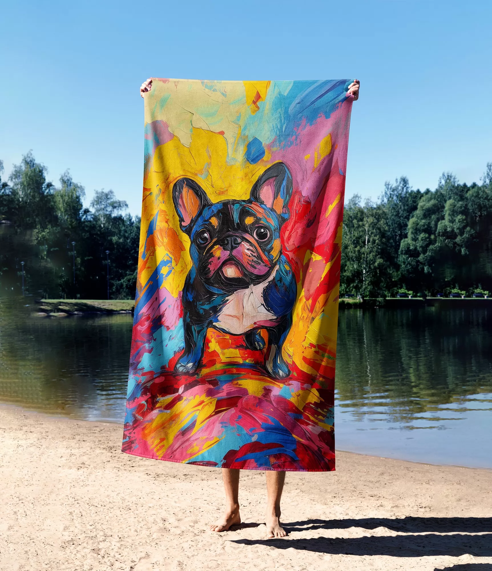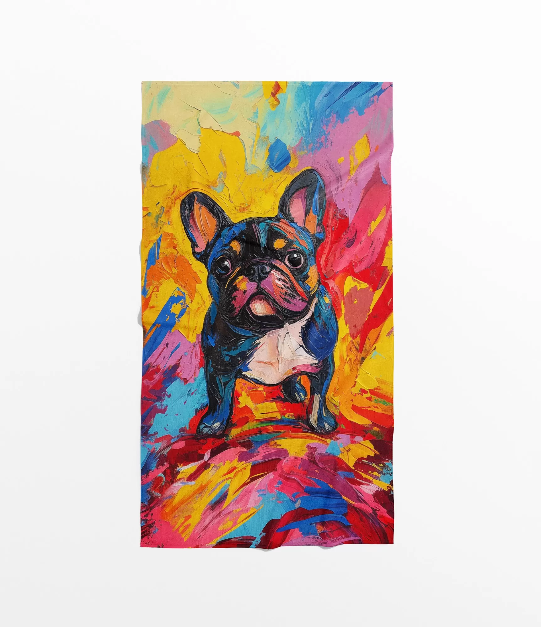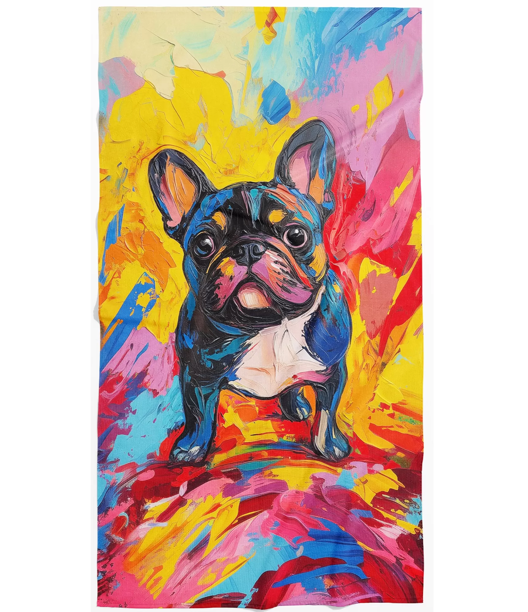Franču buldogs – viena no populārākajām suņu šķirnēm. Šis krāšņo toņu mīkstais un maigs dvielis ar franču buldogu ir lieliska dāvana suņu mīļotājiem. Praktiska un oriģināla dāvana, kad rodas jautājums – ko uzdāvināt suņa saimniekam?