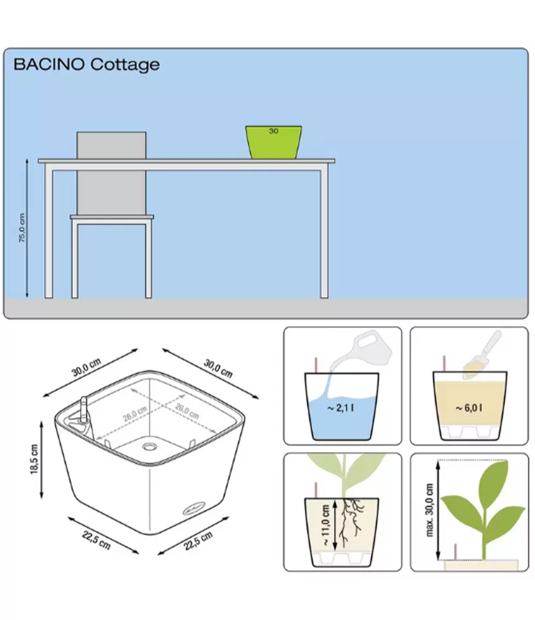 LECHUZA puķu pods Bacino Cottage 30