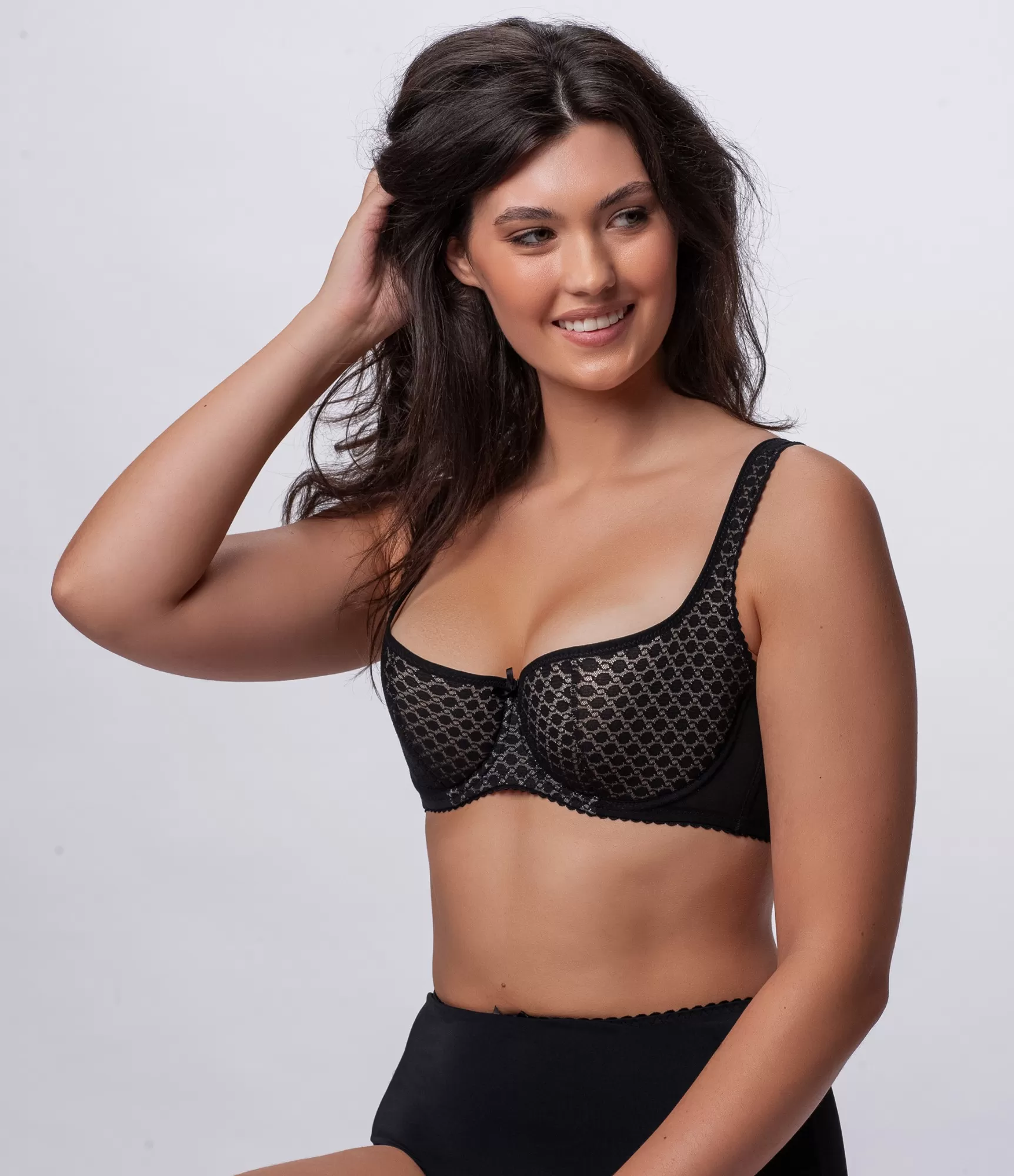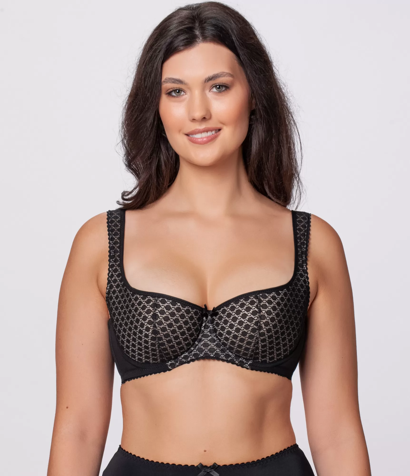 Populārais melnais balkonetes formas krūšturis ar vadiem pieguļ ļoti ērti un lieliski paceļ un atbalsta pat plus izmēra krūtis. Krūštura apakšdaļa veido krūškurvja formu un eleganti izceļ tās skaistumu.