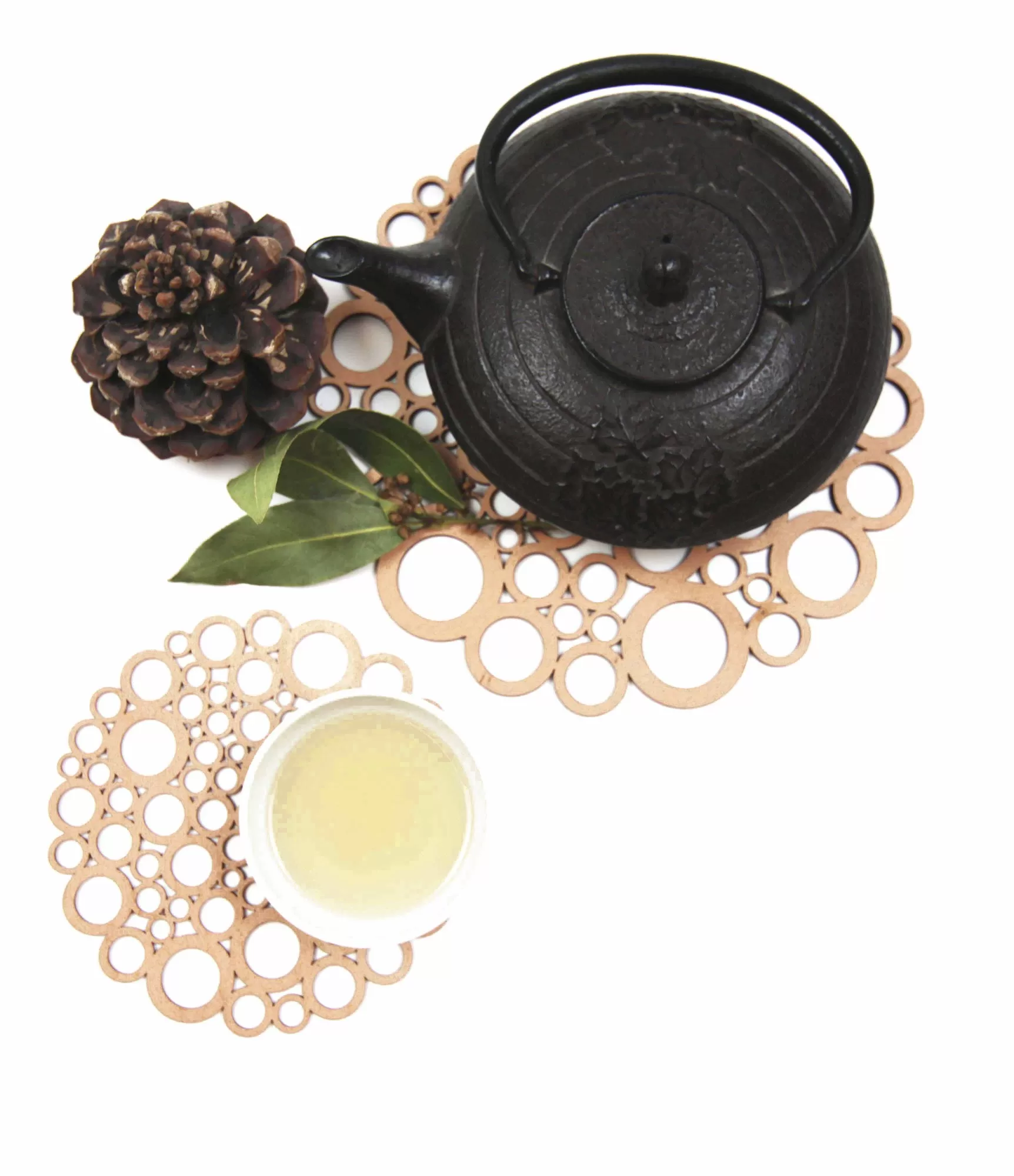 Izturīgi koka paliktņi iš bērza saplāksnis lieliski pasargās virsmas no karstuma, aukstuma vai mitruma. Droši var likt siltos traukus, tējkannu.