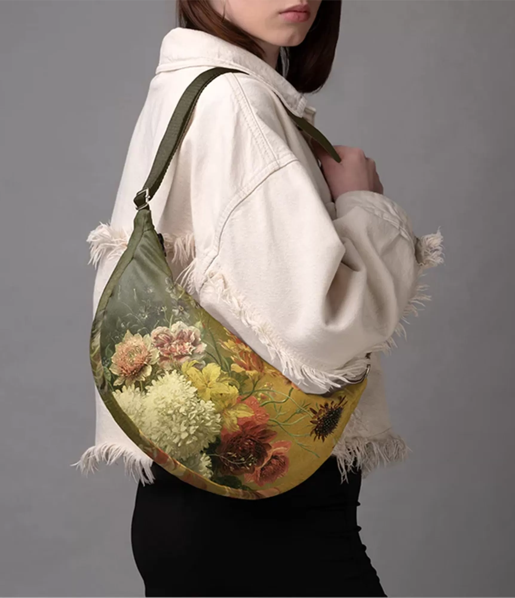 Rokassomu ar regulējamiem rokturiem varat ērti nēsāt rokā, uz pleca vai ap kaklu. Pateicoties universālajam rokturim, jūs varat viegli pielāgot somas pārnēsāšanu atbilstoši savām vajadzībām. Tā ir lieliska izvēle ikdienai, nodrošinot gan komfortu, gan stilu. Peonijas rokassomiņa piešķir jūsu izskatam eleganci un švelnu. Ziedu raksti piešķir rokassomiņai unikalitāti un atšķirību. Tā ir lieliska izvēle gan ikdienai, gan īpašiem gadījumiem, kad vēlaties uzsvērt savu individualitāti.