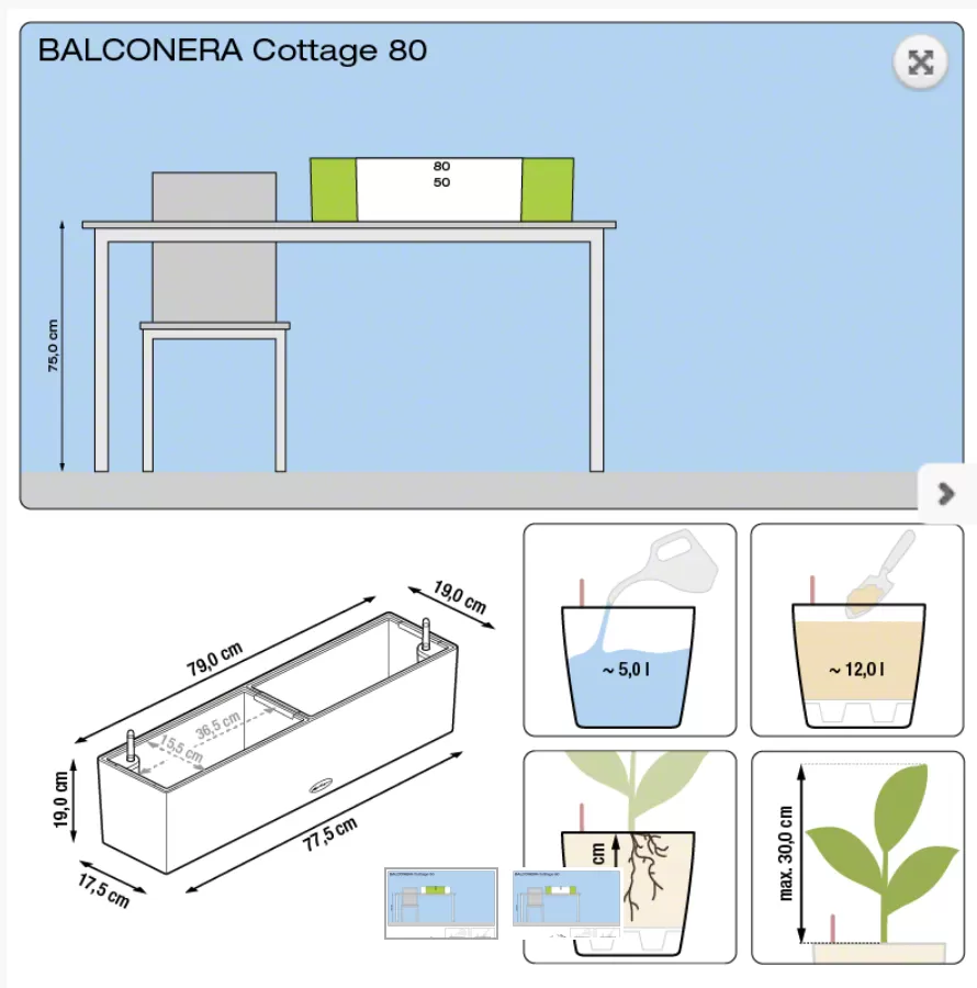 Liels puķu kaste Lechuza Balconera Cottage 80