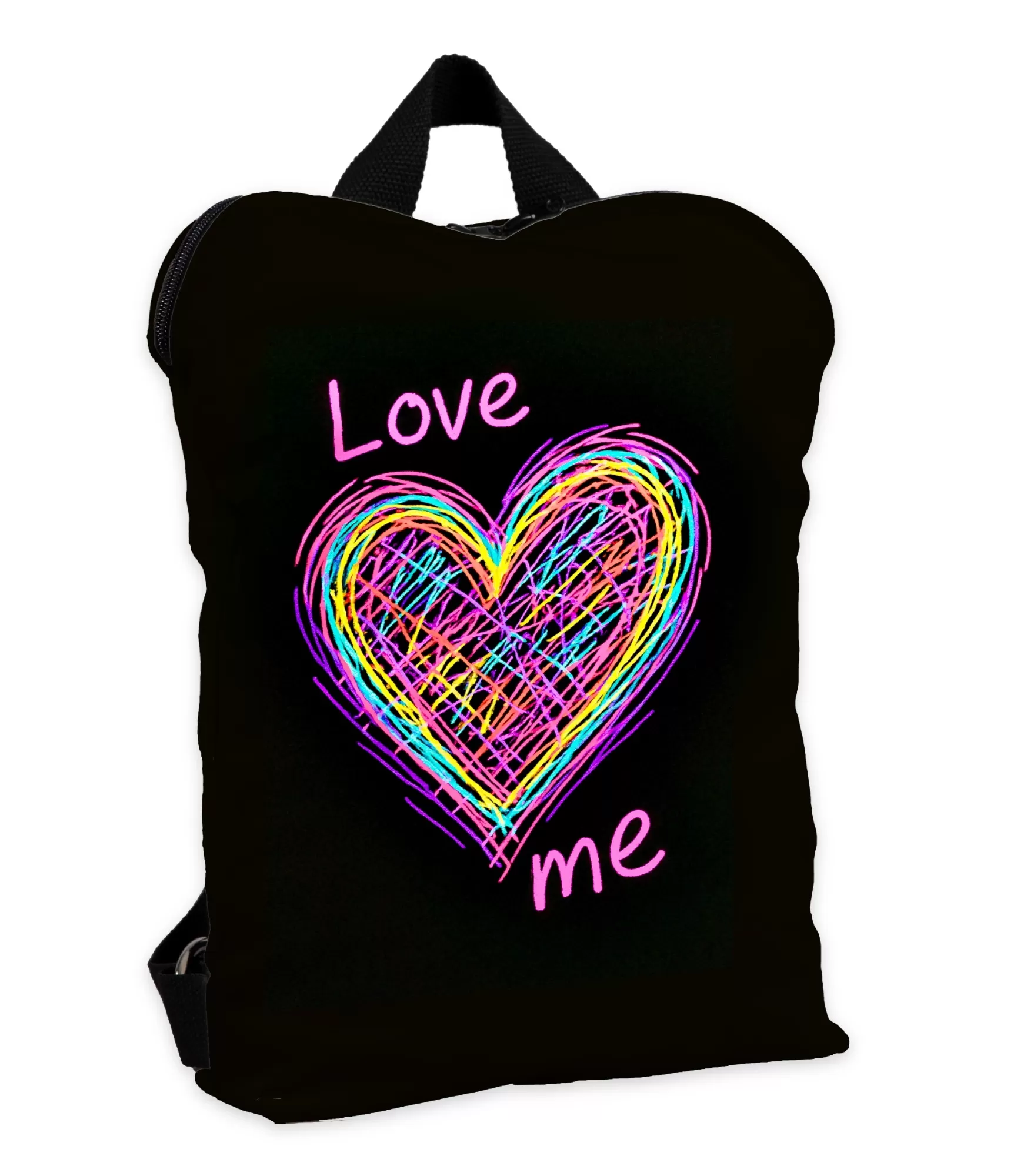 Ir preces, kas kalpo ne tikai ikdienas vajadzībām, bet arī izstaro emocijas, stilu un personisku vēstījumu. Ši sieviešuška mugursoma – viens no šiem. Uz melna fona mirdz krāsaina, neonam līdzīga sirds, kas krāsota ar nekārtīgiem, bet burvīgiem triepieniem. Šī ir glezna, kas atgādina pirmo mīlestību, pusaudžu dienasgrāmatas, ilgas skatienus un bezvārdu "Es tevi mīlu". Viršuje – "Mīlestība" rakstīts rozā "plīsums" apakšā – „mēs“. Tā nav tikai dizaina detaļa, bet gan aicinājums, paziņojums, emocionāls vēstījums, ko sieviete ikdienā nenēsā līdzi.