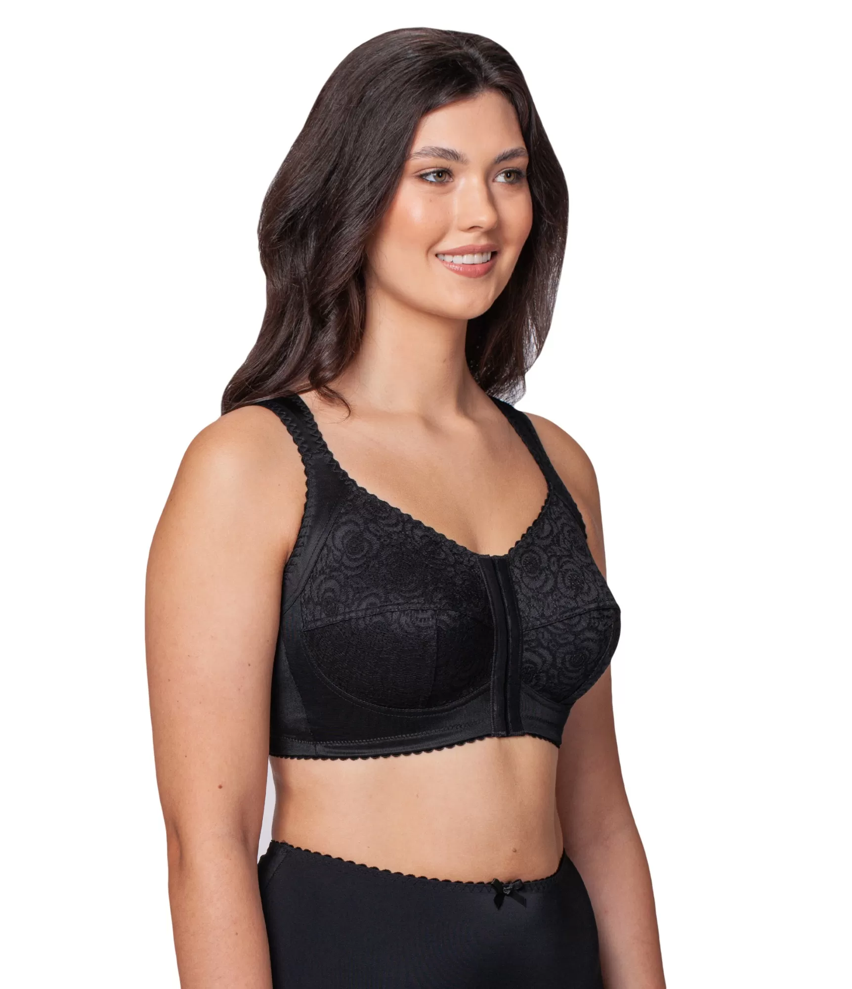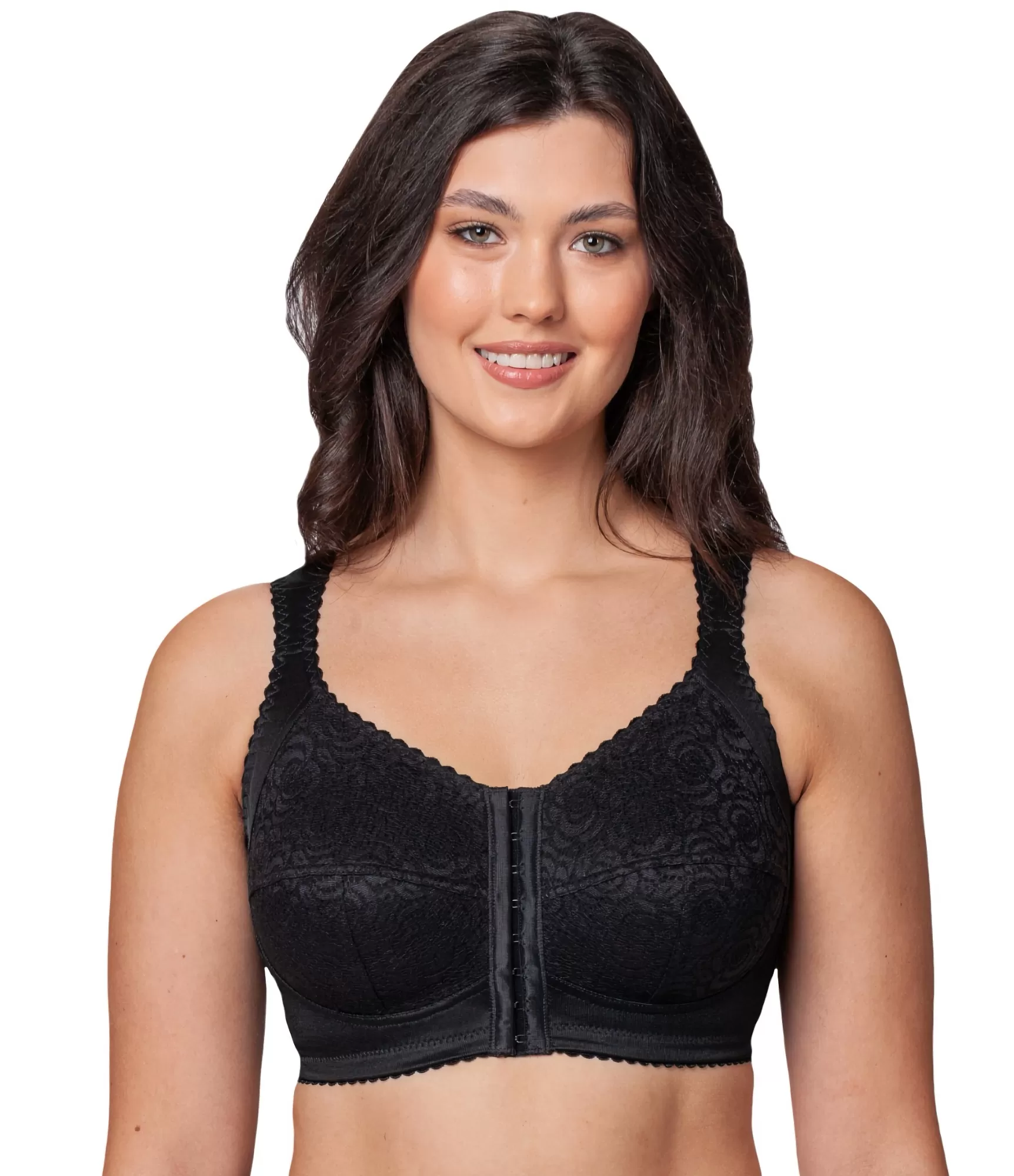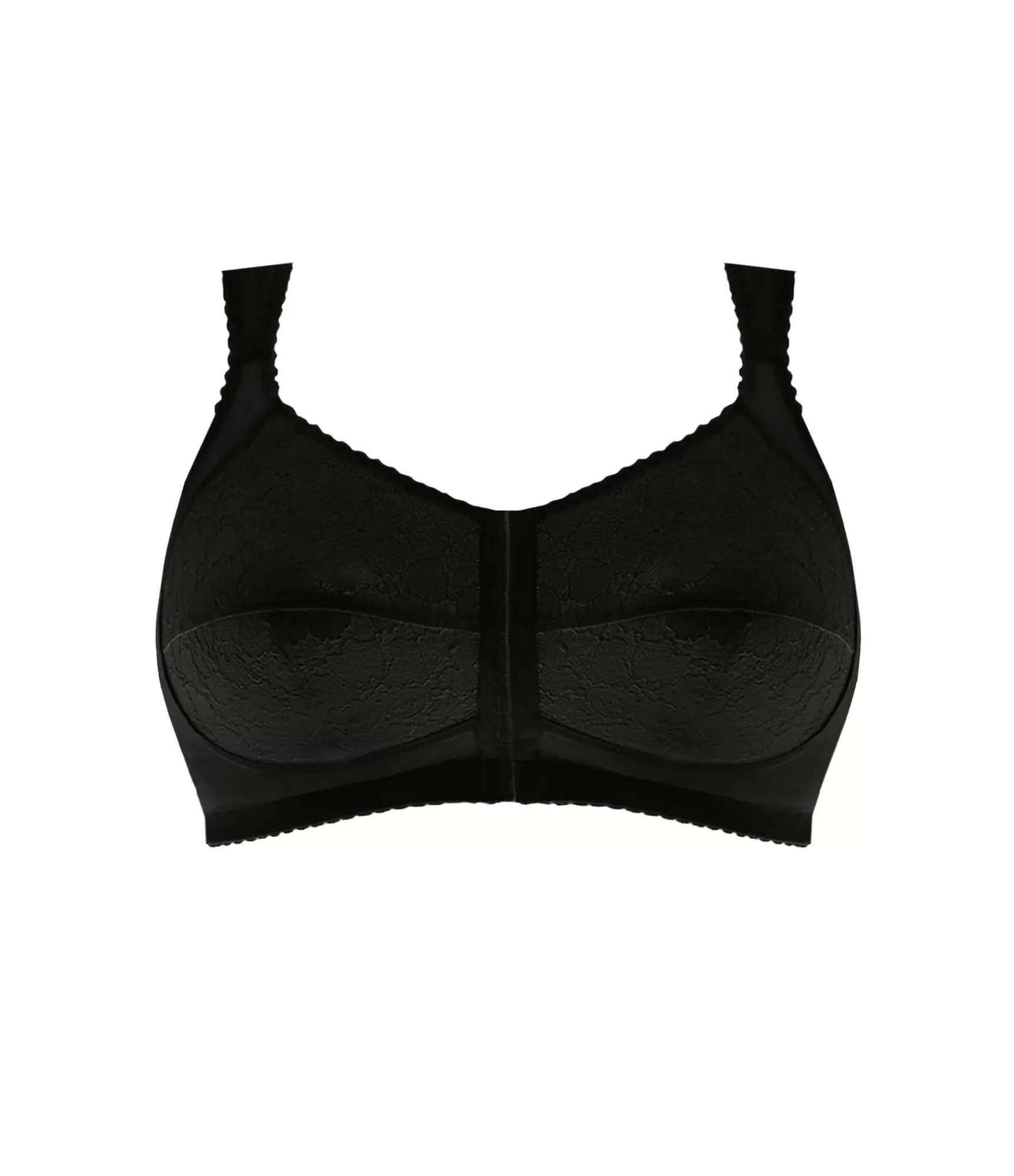 Ērts un stabils krūšturis bez stieples, aizdare priekšpusē – tā ir ideāla izvēle sievietēm ar lielākām krūtīm. Pateicoties īpašajam muguras daļas dizainam, jūsu mugura ir mazāk nogurusi, jo palīdz to noturēt taisnāku. T-veida, augsti krūštura kausiņi veido konusveida krūšu siluetu. Krūštura apakšdaļa ir dekorēta ar mežģīnēm un papildus pastiprināta ar plānu kokvilnas oderi. Krūštura siksnas ir platas, reljefas siksnas nodrošina komfortu, neiegriežas, nespiež un patiešām atbalsta lielāku krūti.