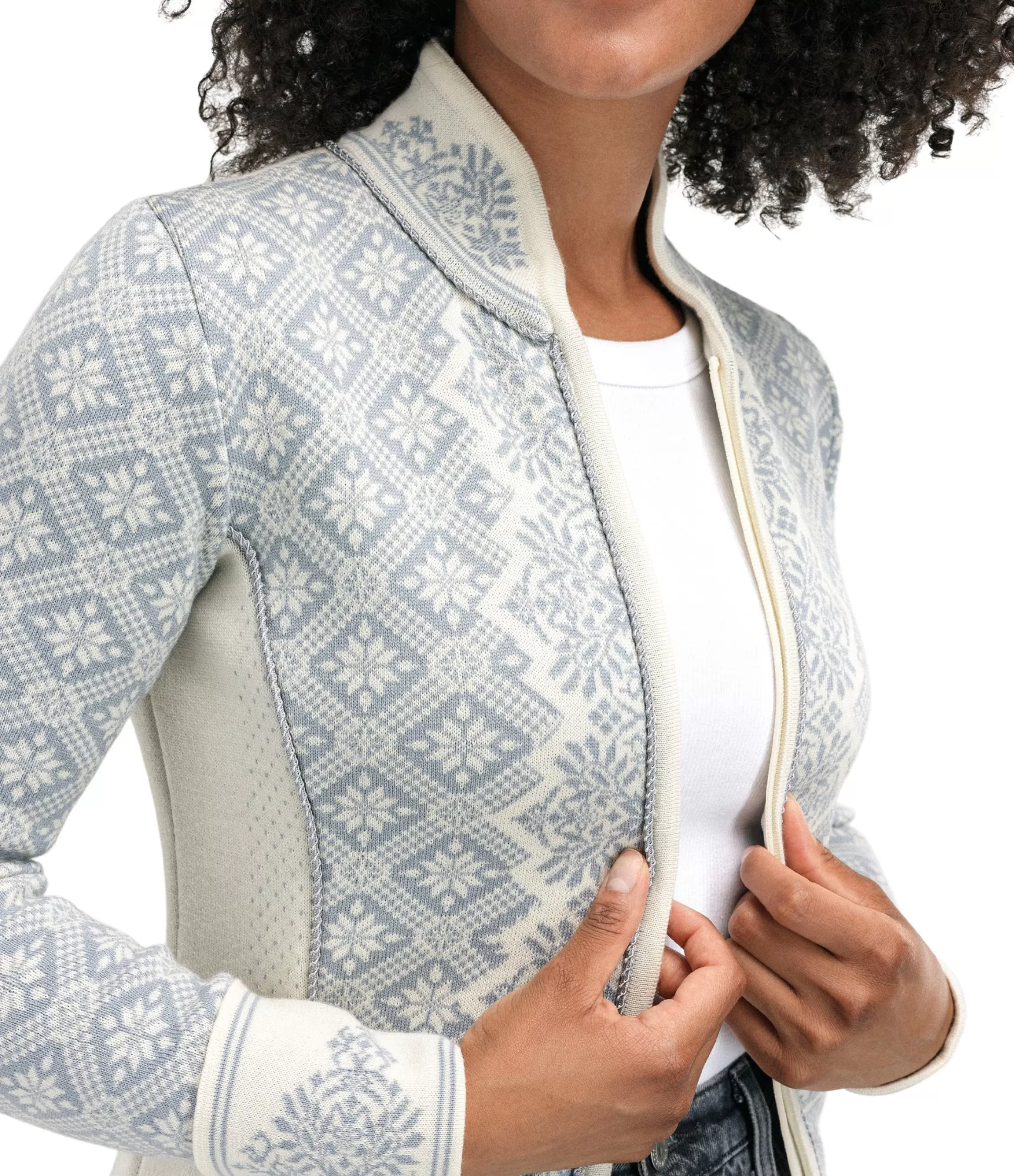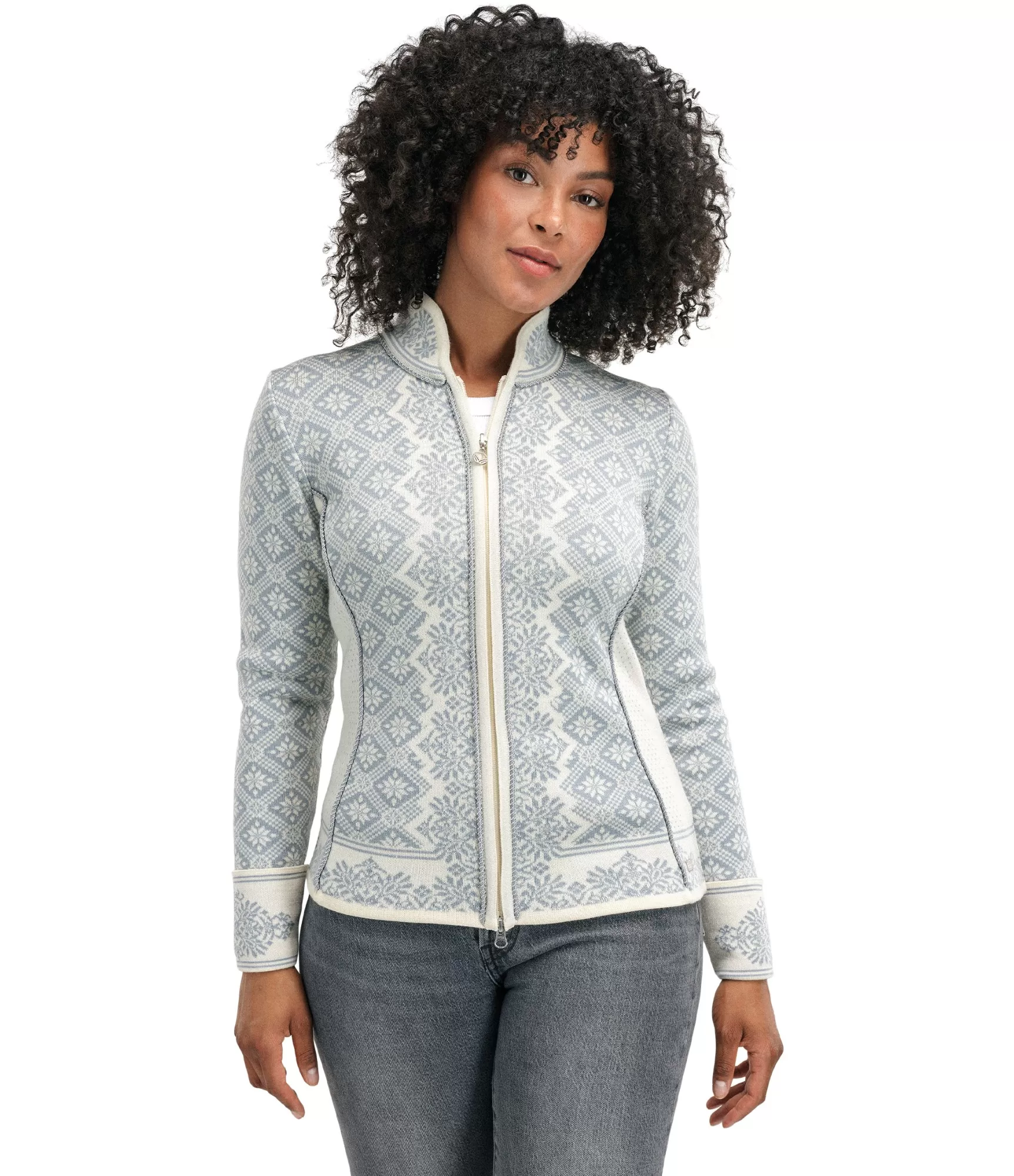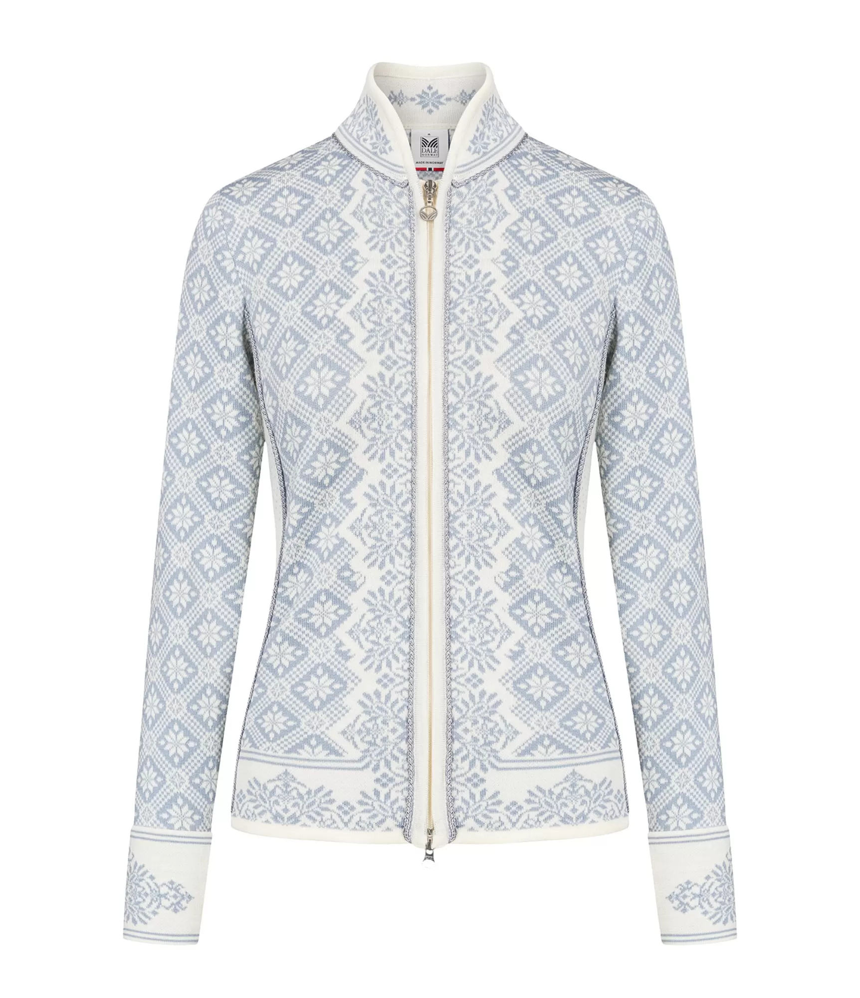 Offwhite Metalgrey krāsu kombinācija smalki uzsver tradicionālos norvēģu rakstus un piešķir džemperim izsmalcinātu eleganci. Elegantais Slim Fit piegriezums pieguļ ķermenim, un divvirzienu rāvējslēdzējs ļauj viegli pielāgot kritienu un radīt dažādus izskatus. Žaketes siluets uzsver figūru, bet saglabā komfortu – ideāli piemērots gan džinsiem ikdienas valkāšanai, gan klasiskam biroja apģērbam.