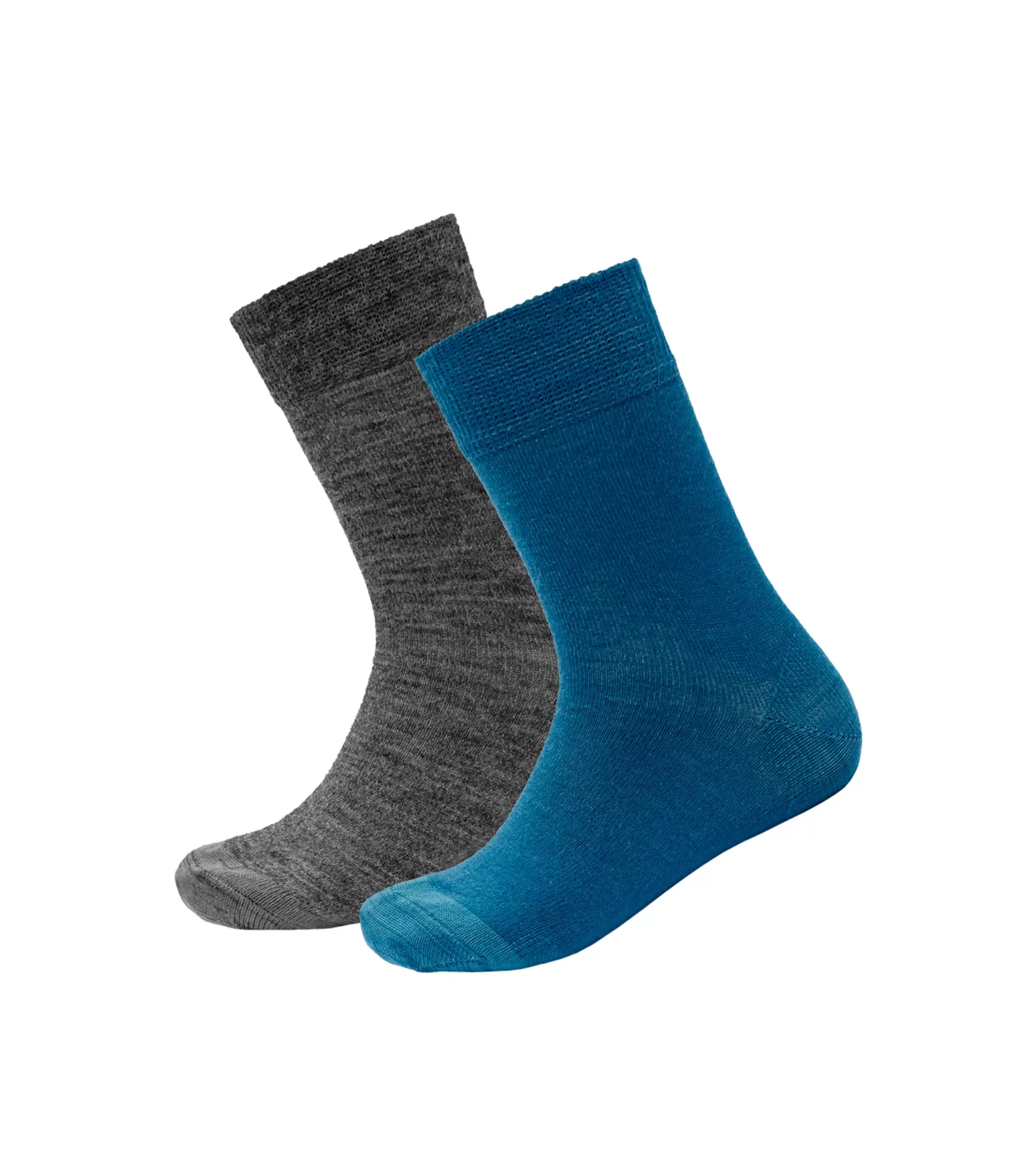 Iepakojumā — 2 pāri zeķu dažādās krāsās — zilā un pelēkā.