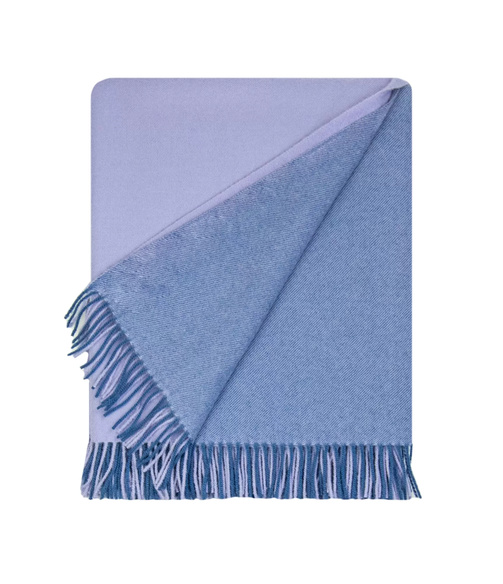 Šis modelis īpaši piemērots gaišiem, minimālistiskiem interjeriem, kuros vēlas smalku krāsu akcentu. Zilganais tonis piešķir dziļumu, bet lavandas tonis ienes vieglumu. Uzklāts uz dīvāna vai gultas, pleds palīdz radīt mierīgāku, sabalansētu atmosfēru. Tas var kļūt par centrālo akcentu neitrālā telpā vai papildināt jau esošos zilos vai violetos toņus.