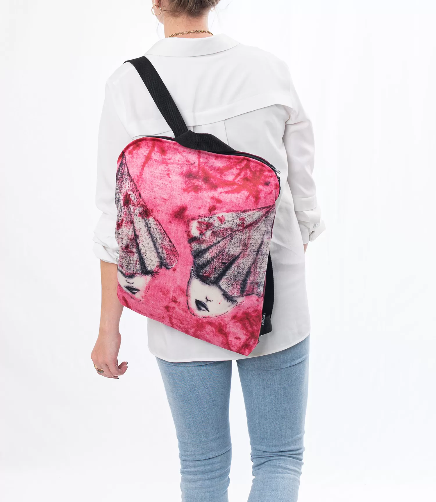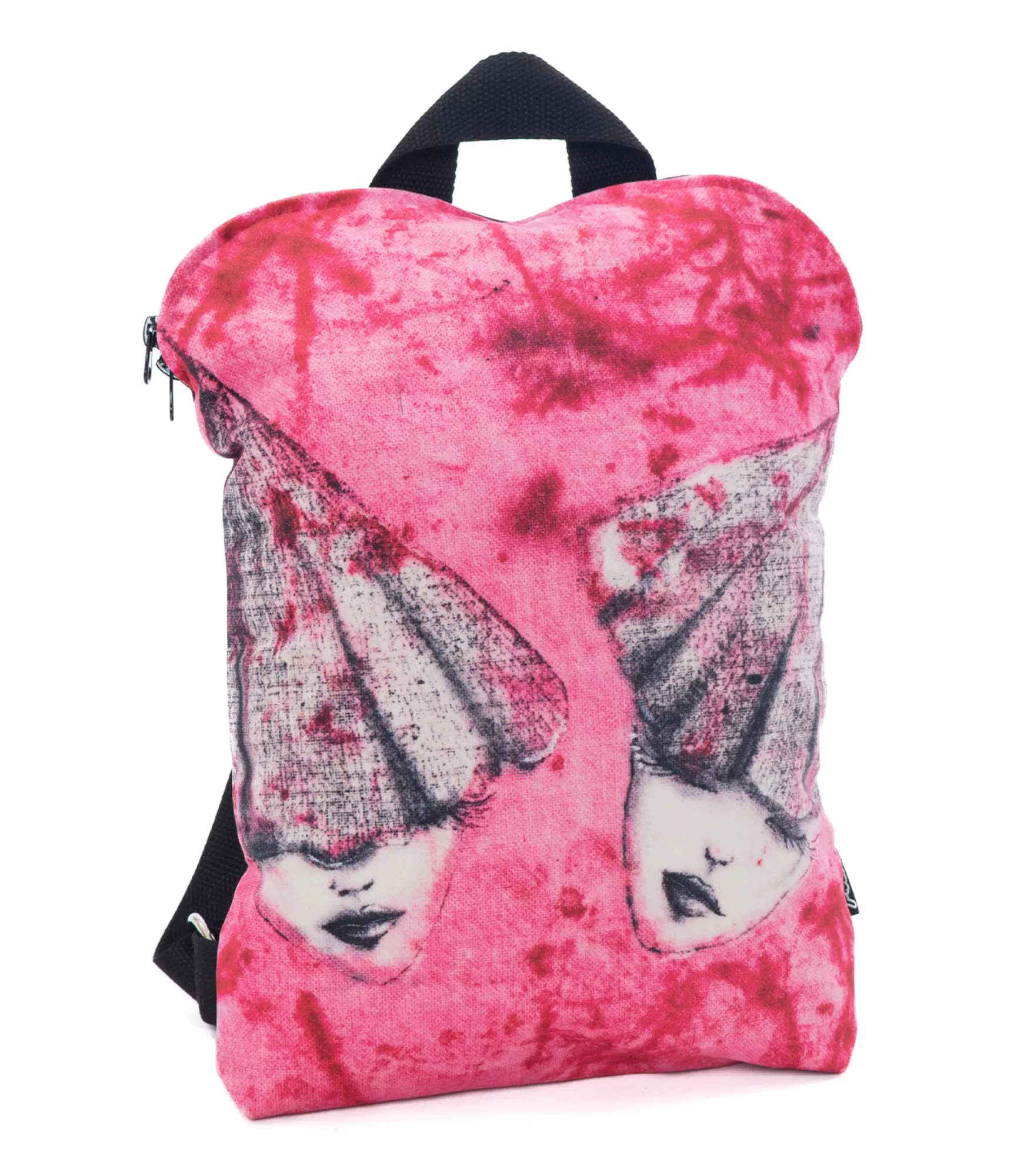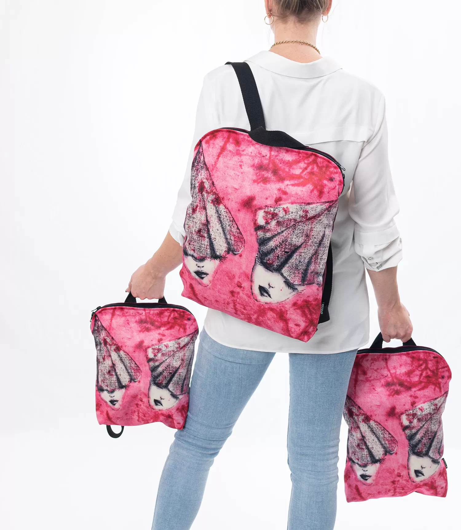 Zīmējums, attēls un/vai fotogrāfija tiek uzdrukāta vienā mugursomas pusē. Otra puse neapdrukāta, vienkrāsaina.