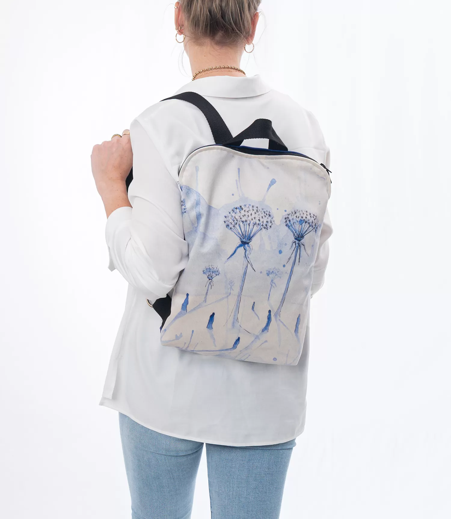 Zīmējums, attēls un/vai fotogrāfija tiek uzdrukāta vienā mugursomas pusē. Otra puse neapdrukāta, vienkrāsaina.