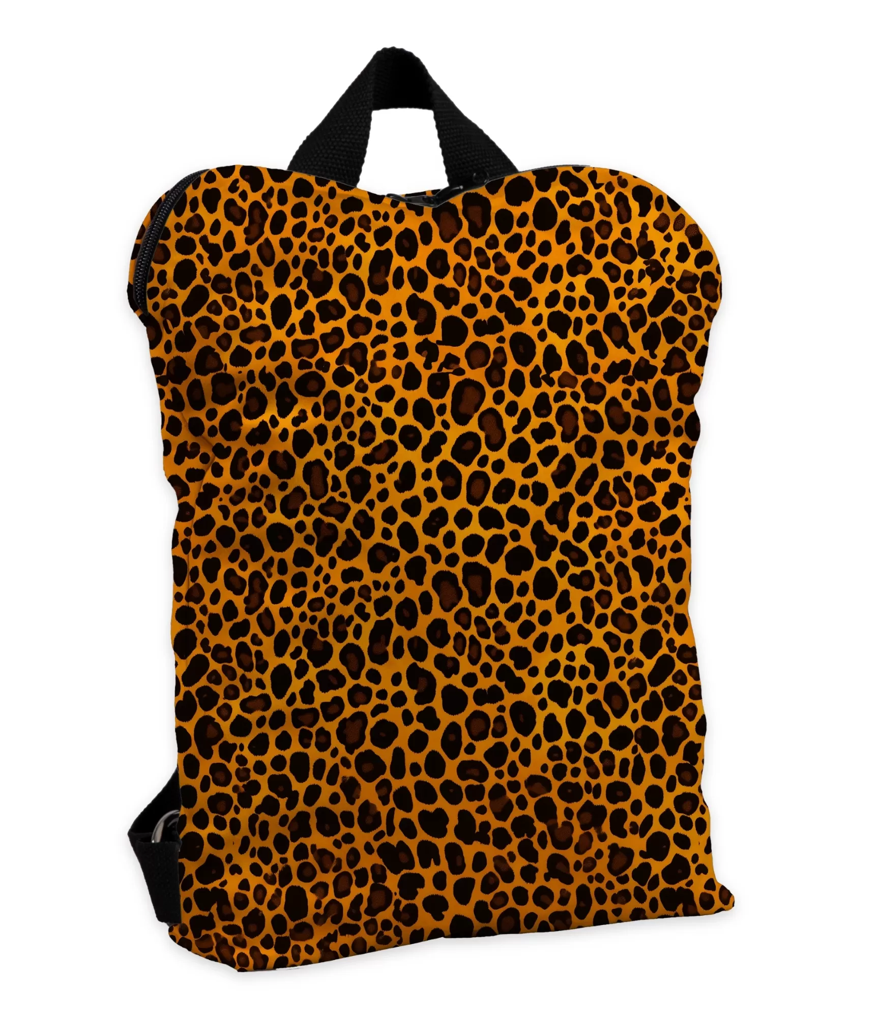 Šķiet, ka mugursomas spilgti oranžais audekls izstaro tuksnesi šilm, un melni un brūni plankumi, kas izmesti haotiskā, bet dabiskā ritmā, acumirklī atgādina par ātrāko dzīvnieku uz zemes – ģeopards. ššis modelis runā par ātrumu, brīvību un mednieka instinktu – nevis agresīvi, bet eleganti un smalki. It kā mežonīgs vējš ir nolaidies modes pasaulē, atstājot zīmi uz mugursomas virsmas. Melnas siksnas un rāvējslēdzēja detaļas piešķir dizainam stingrību un līdzsvaru – it kā tas būtu izsmalcināts stila sajaukums starp pilsētu un savannu. Minka ir formu saglabājoša, slaida, bet drosmīga – tā ir mugursoma, kas papildina apģērbu kā paziņojums: „aš Es eju savu ceļu”.