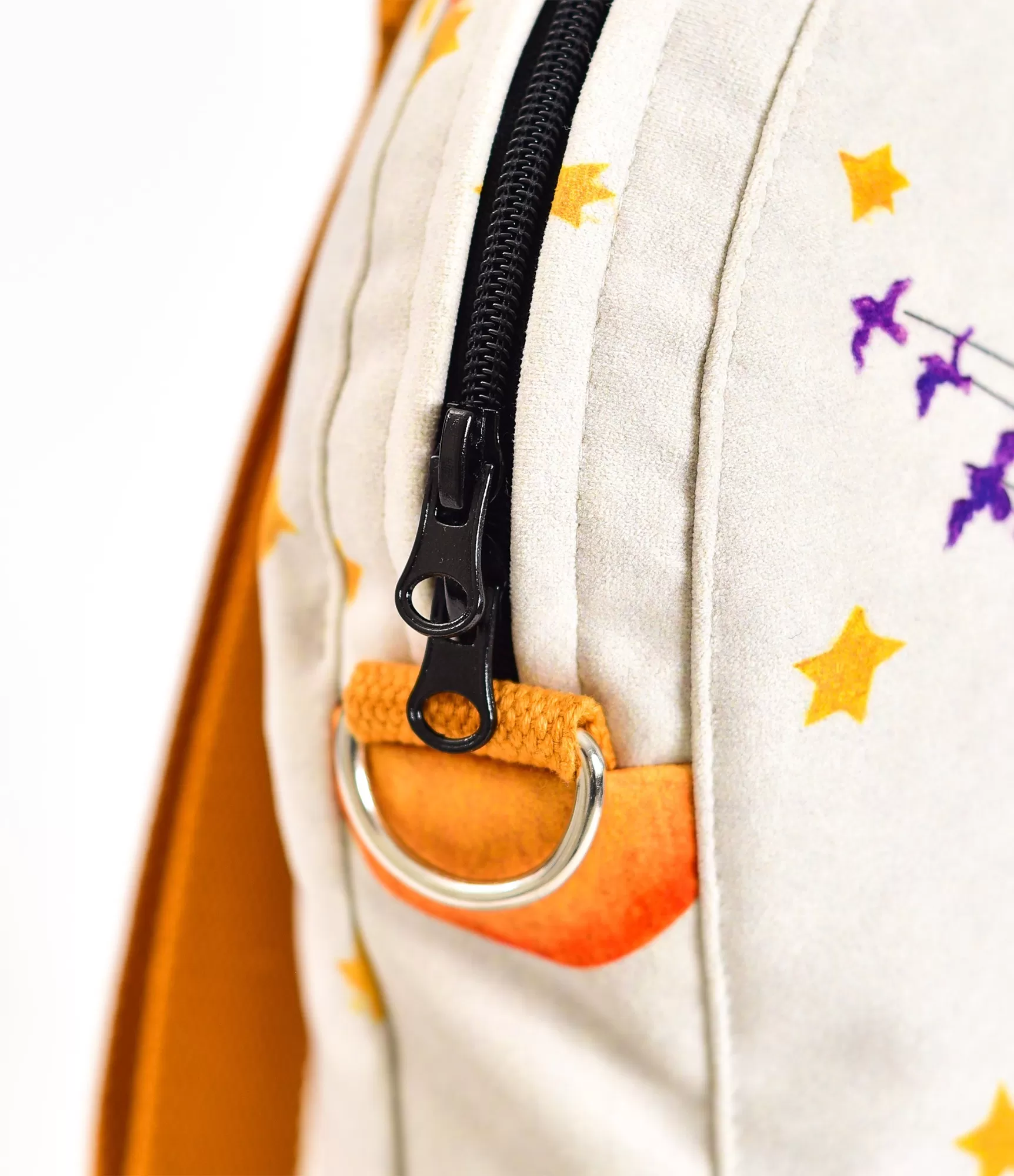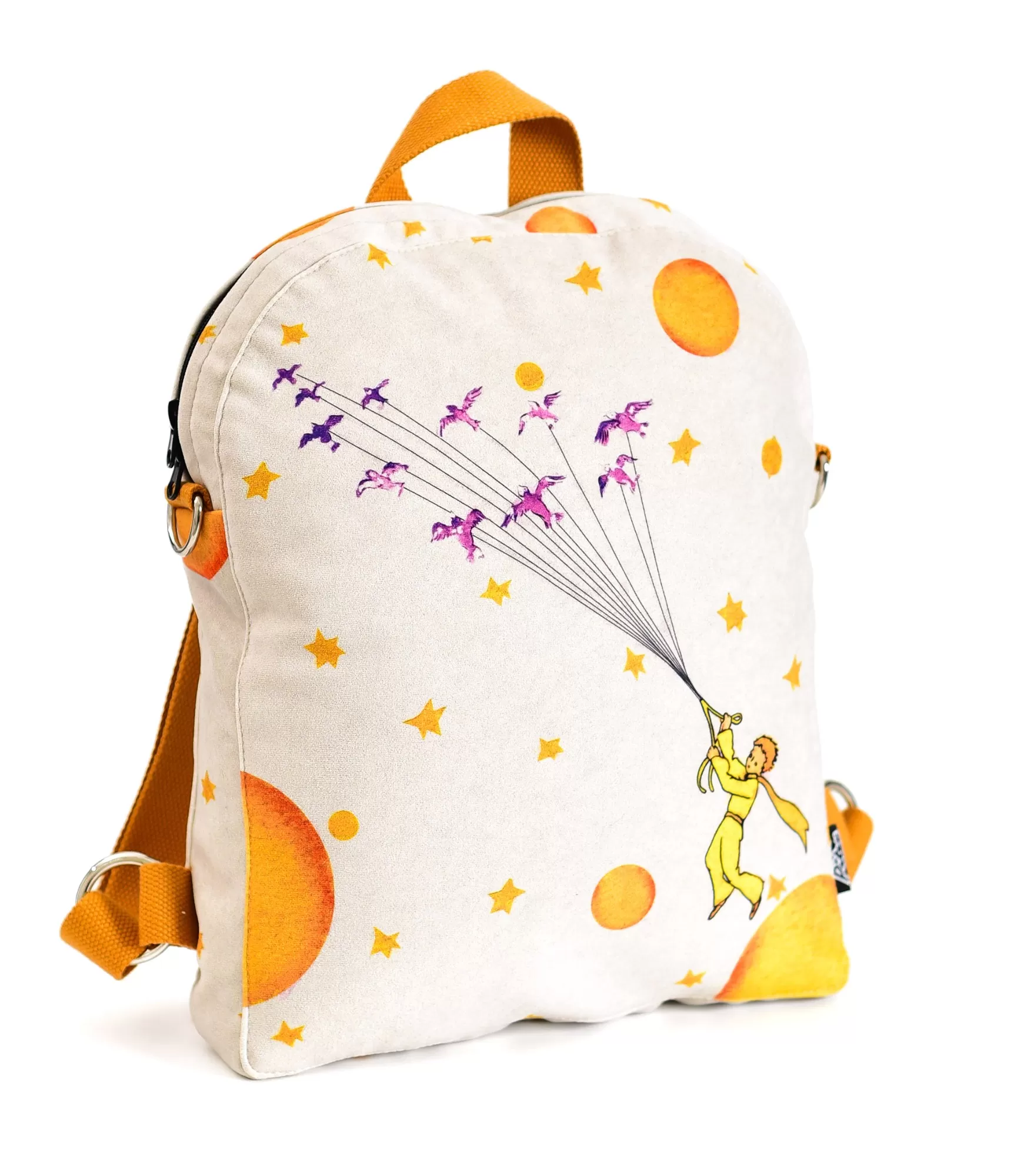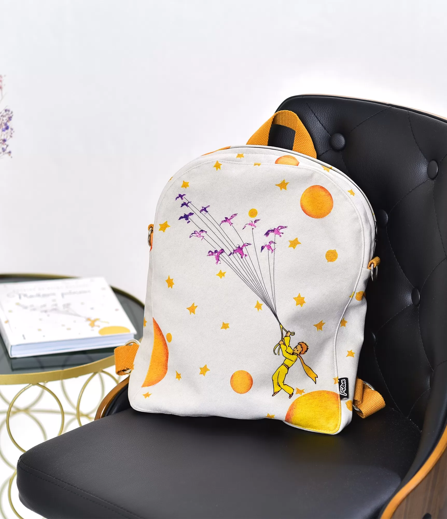 Ietilpīgā, lielā baltā mugursoma ar Mazā prinča pasakas motīviem ir šietilpīga un elegantaška. Š aksesuārs ne tikai nodrošinās pietiekami daudz vietas jūsu svarīgākajām lietām, bet arī piešķirs jūsu ikdienas tērpam pasaku šarmu. Tā ir lieliska izvēle tiem, kam patīk smalks un stilīgs stils un kuri vēlas savam tērpam pievienot interesantu motīvu.