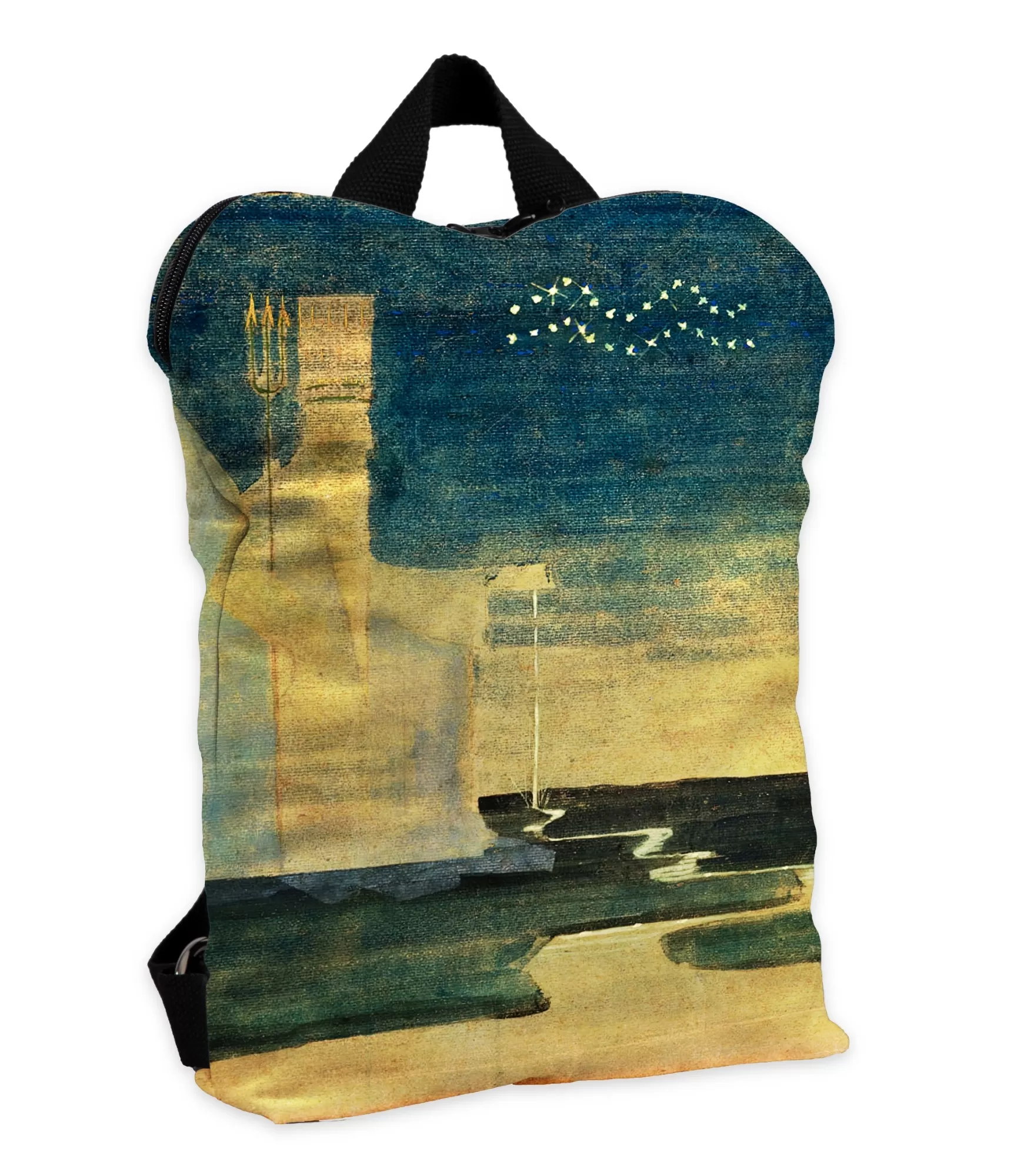Ir mugursomas, kas vienkārši palīdz glabāt savas lietas. Un ir tādi, kas kļūst par neizdzēšamu mākslas darbu, emocionālu simbolu, pat personības paplašinājumu. Sievietes mugursoma, kas dekorēta ar M. K. Čiurlioņa gleznas "Saule iet Ūdensvīra zīmē" motīvu, pieder tieši otrajai kategorijai. Viņa runā ne tikai par stilu, bet arī par iekšējo brīvību, iztēli un spēju dzīvot ārpus shēmām – un saskaņā ar viņa paša zvaigznāju.