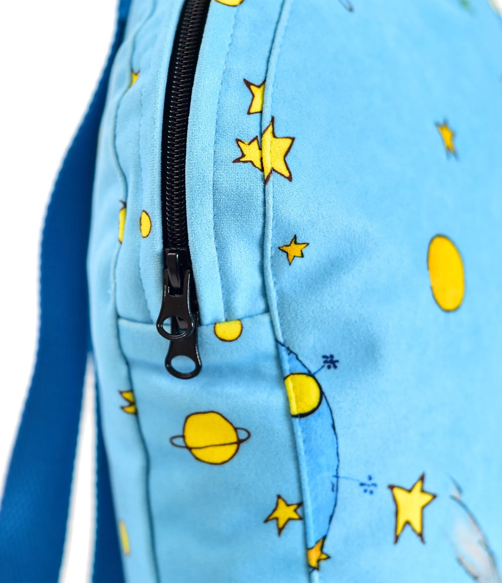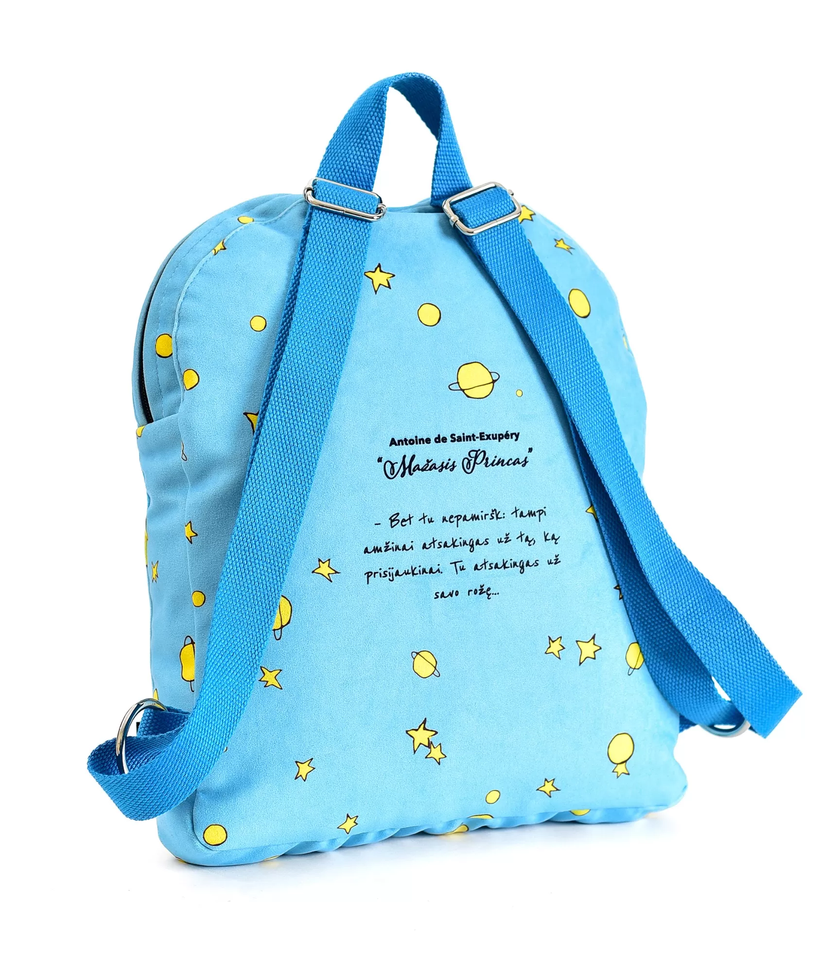 Ietilpīgā, lielā šgaiši zilā mugursoma ar Mazā prinča motīviem ir burvīga un funkcionāla izvēle. Mugursoma nodrošinās daudz vietas un komforta, un pasaku motīvi tai piešķirs unikalitāti un unikalitāti. Tas ir ideāls aksesuārs gan ikdienas lietošanai, gan ceļojumiem, piešķirot savam stilam pasakainu šarmu.