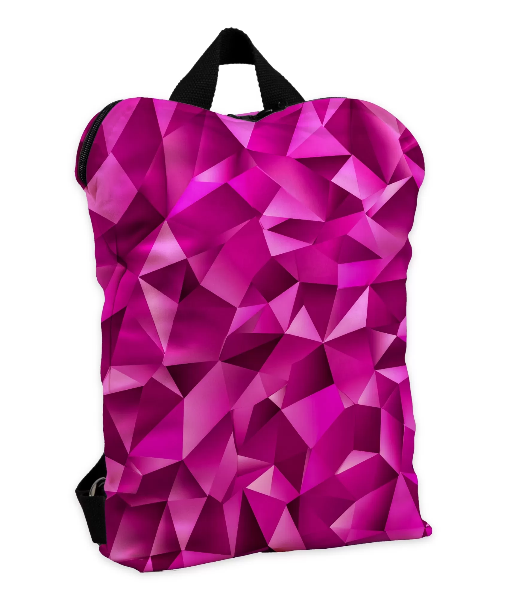Ir dienas, kad vēlaties spīdēt – nevis neveikli, bet stingri. Šai mugursomai nav tieši tādas sajūtas. Tās virsma atgādina grebtu dārgakmeni: stūrainās fuksijas nokrāsas saplūst kristāla ornamentā, kas spēlējas gaismā kā īpašs akmens. Nav ziedu, portretu vai pļavu – tikai tūkstošiem leņķu, līniju un nokrāsu, kas veido vienu kopīgu ritmu – elegantsškaut kas stabils, nedaudz noslēpumains.
