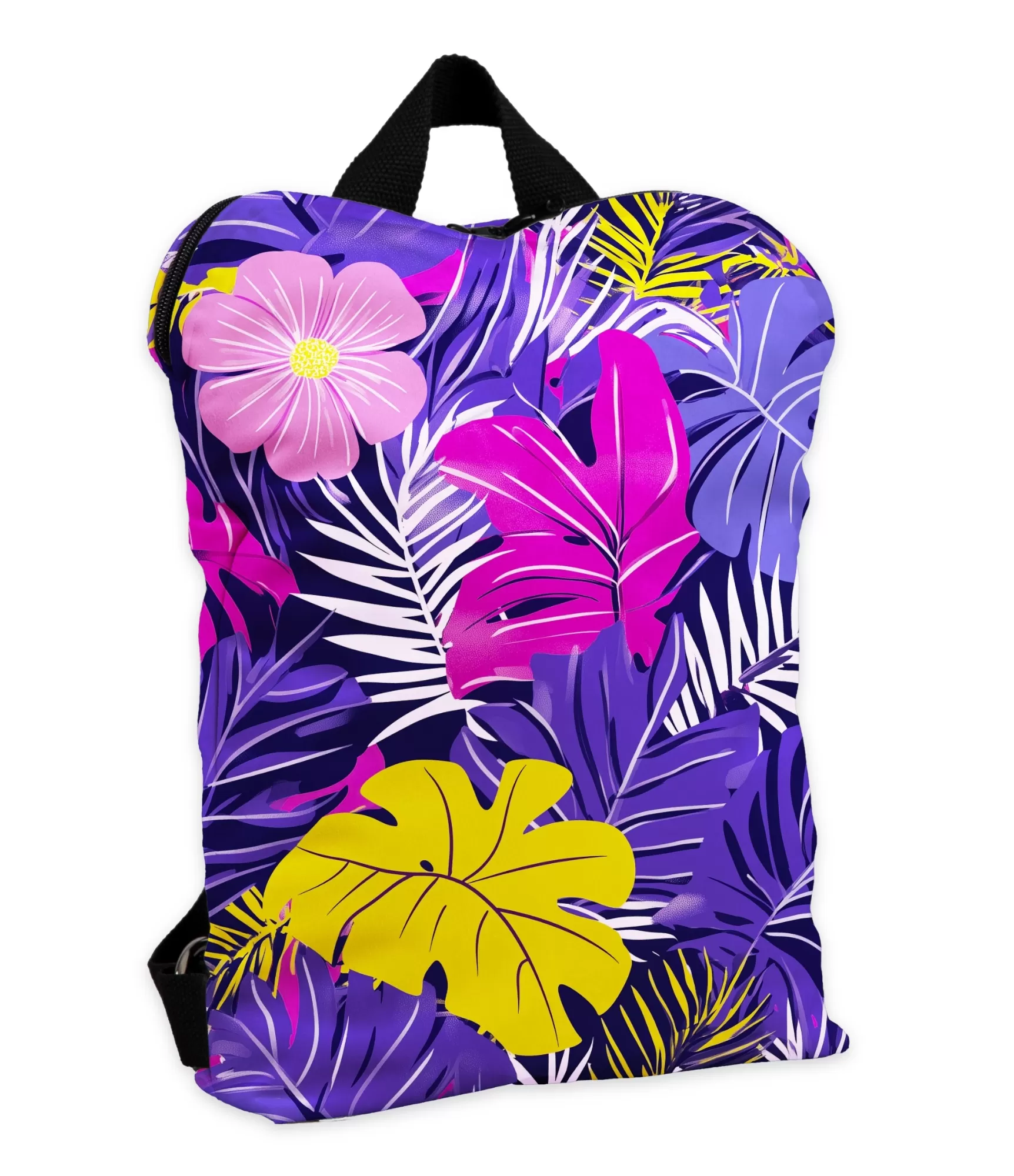 Eksotisks skatījums uz dzīvi sākas ar rīta dizainu – mugursoma, ko redzat vietnēš pati par sevi ir kā krāsu džungļi, kur katrs solis kļūst par dzenāšanu pa tropu dārzu. Violetās, zilās un rozā lapas skaisti saplūst grafiskā kompozīcijā, un šur tur ir kontrastējoša dzeltena krāsa, kas bagātina kopainu. Viens skatiens – un jau jūtams siltais gaiss, jūras brīze, vasarīgs noskaņojums. Tas nav tikai aksesuārs – tas ir labs garastāvoklis uz jūsu pleciem.