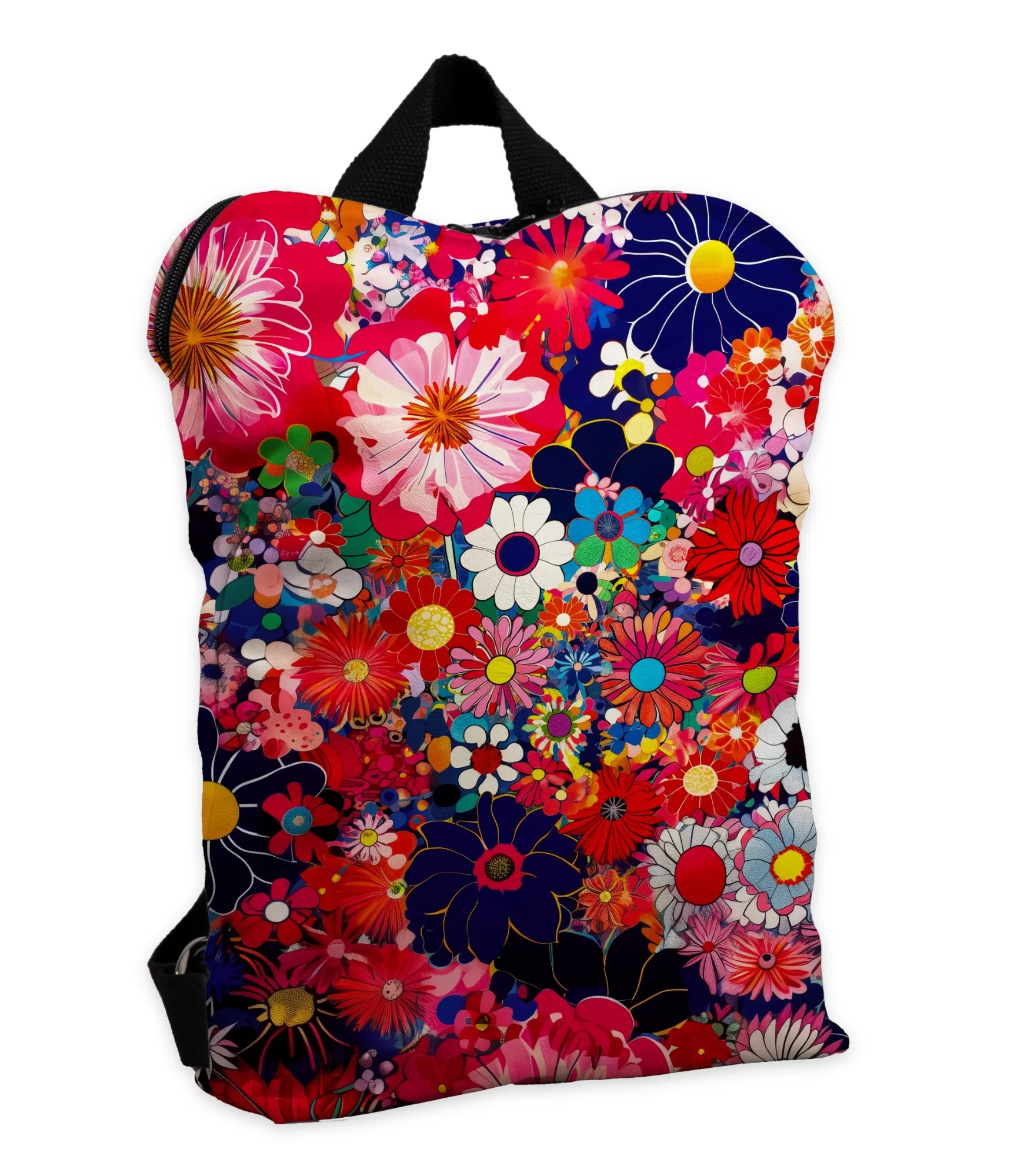Ši mugursoma izskatās pēc pavasara krāsu eksplozijas – katra detaļa pulsē dzīvībā. Uz spilgta, tomēr bagātīga fona ir daudz ziedu, kas it kā krāsoti ar drosmīgiem, plašiem triepieniem. Zilgani, rozā, dzelteni un sarkani ziedu plankumi rada unikālu uzmanību. viņi necenšas būt simetriski vai mierīgi, viņi dzīvo savā ritmā. Ziedi izskatās kā nokrituši no mākslinieces paletes, vēl svaigi, dzīvi. Tas ir š radošais haoss, kas ir aizraujošs – mugursoma kļūst ne tikai par praktisku aksesuāru, bet arī par garastāvokļa manifestu. Šķiet, ka viņa saka, ka š šis rīts būs tavs, ka diena pieder tev, ka nekas nav apspiestības vērts – ne krāsas, ne emocijas. Un, kad jūs to neredzat, jūs sākat pamanīt: cilvēki griežas, smaida, it kā viņu dienu būtu aizkustinājis jūsu personīgais krāsu mākonis.