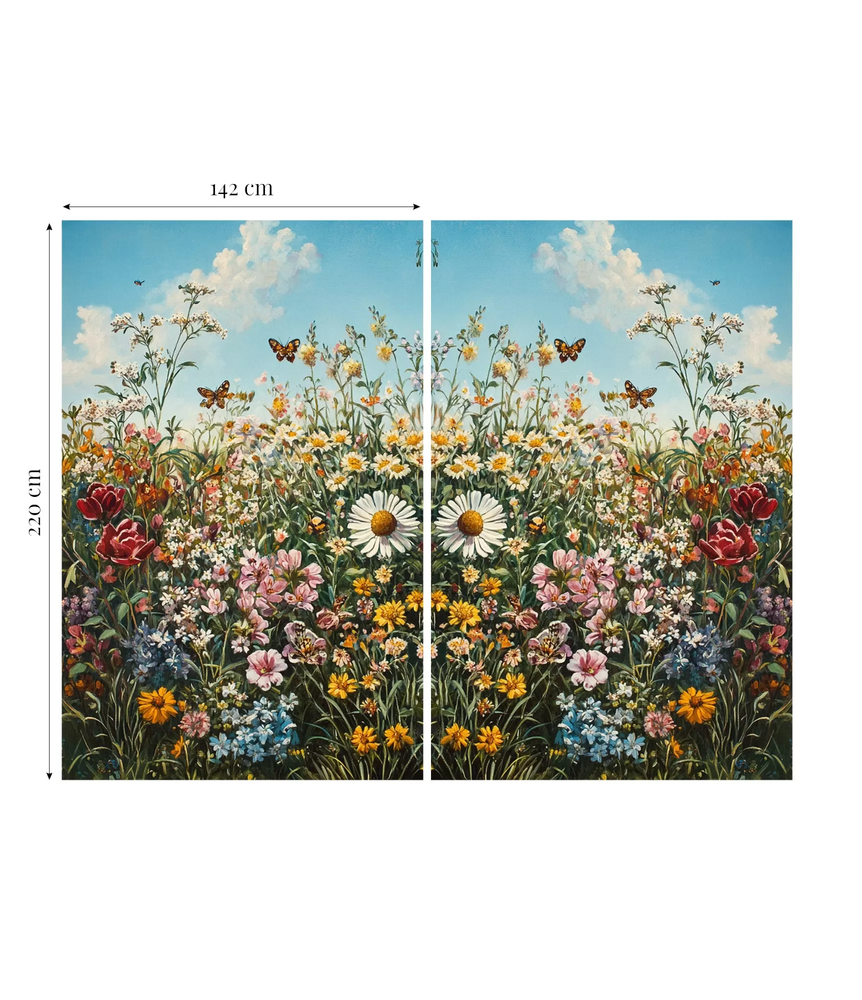 Vienas daļas platums – ~142 cm, kopējais platums: ~284 cm.