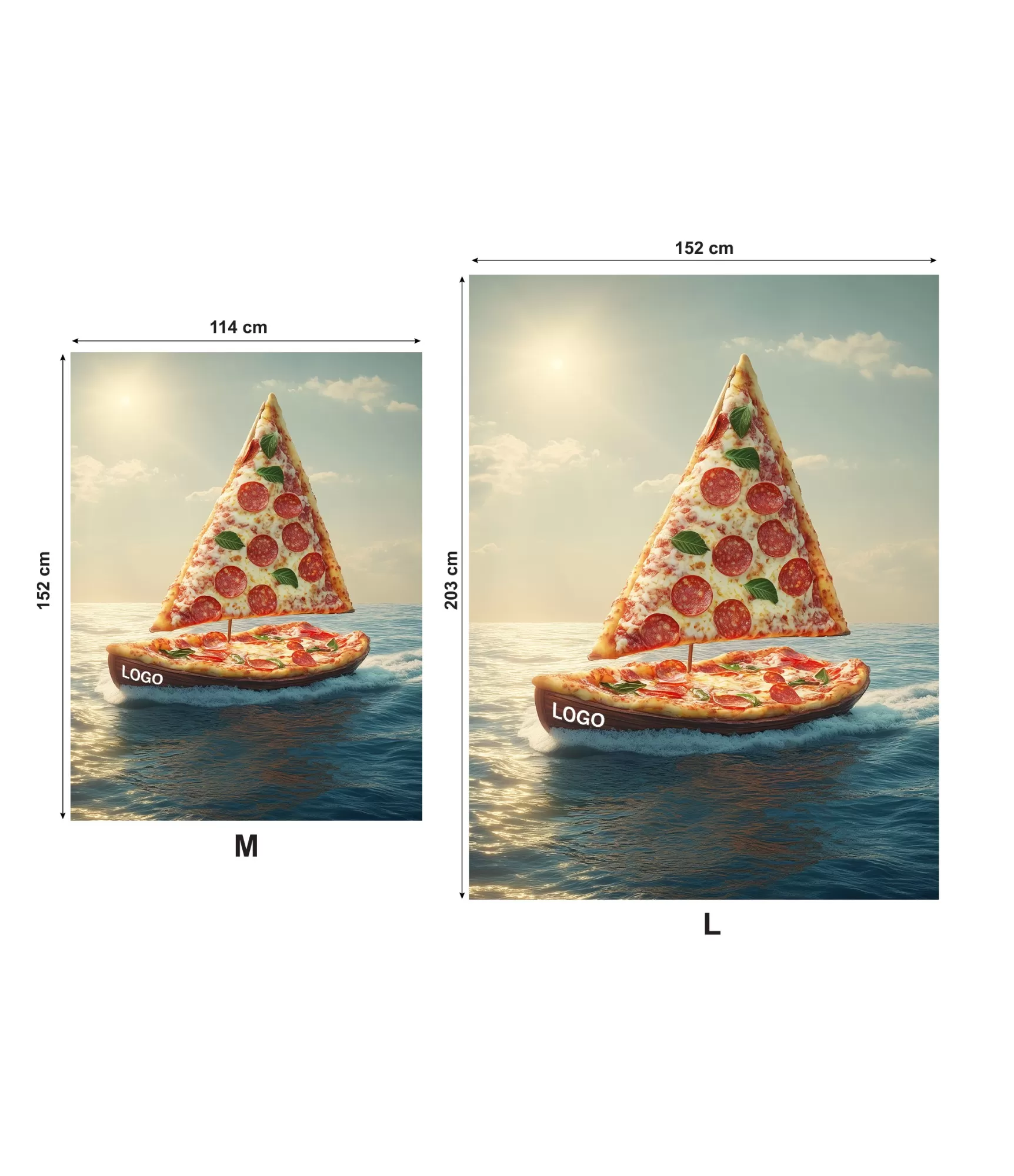 Plaids ar iš unikālo sirreālistisko dizainu, kas attēlo kuģi iš picas, ir oriģināla un rotaļīga izvēle gan kā dāvana, gan kā unikāls interjera akcents. Šī ir lieliska ideja kolēģiem, biznesa klientiem vai ikvienam, kas novērtē humoru un radošumu. Šī sega lieliski piemērota arī picērijām, kafejnīcām un restorāniem, kas vēlas savai telpai piešķirt ne tikai mājīgumu, bet arī īpašu, mūsdienīgu akcentu. Turklāt mēs varam izveidot pielāgotu dizainu atbilstoši jūsu vēlmēm, izmantojot krāsas, logotipus vai citus elementus, kas atspoguļo jūsu biznesa vai personīgo stilu.