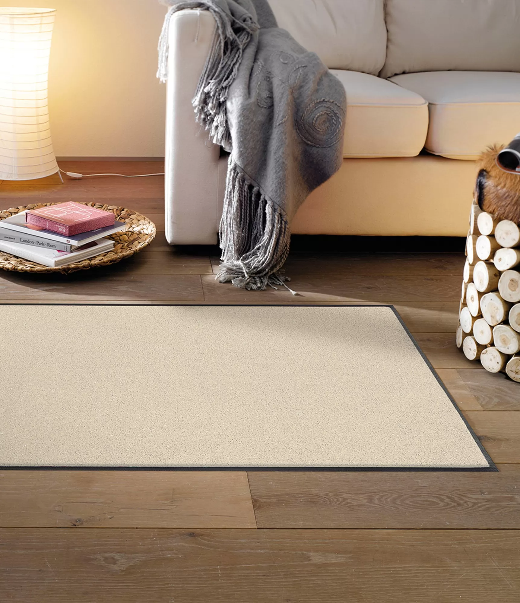Paklāji, paklāju celiņi un durvju paklāji „Champagner“ izceļas ar gaišu, elegantu toni, kas interjeram piešķir viegluma un kārtības sajūtu. Maigā smilškrāsas nokrāsa atgādina dabiskus toņus, tāpēc šis segums viegli iekļaujas dažādās mājas telpās un veido smalku, harmonisku fonu. Tas ir risinājums tiem, kuri novērtē tīru, vizuāli mierīgu vidi bez spilgtiem kontrastiem.