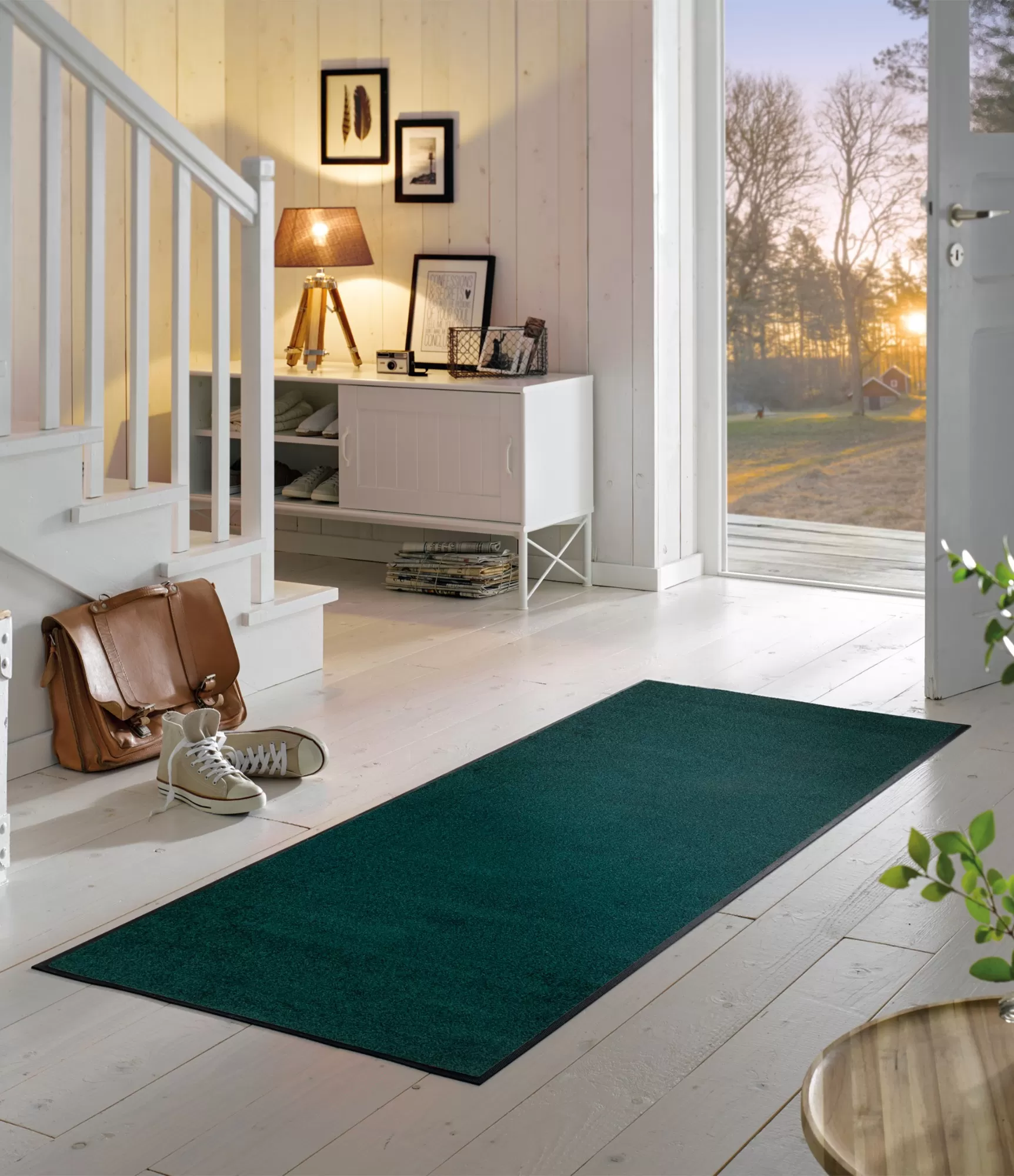 Šis paklājs, paklāja celiņš vai durvju paklājs „Deep Jungle“ izceļas ar dziļu, piesātinātu zaļo krāsu, kas piešķir telpai mieru un dabiskuma sajūtu. Minimālistisks, vienkrāsains dizains viegli iekļaujas dažādos interjeros – no moderna līdz klasiskam. Tā ir izvēle tiem, kuri novērtē smalkumu, bet vēlas saglabāt kārtīgu un estētisku ieejas zonu.