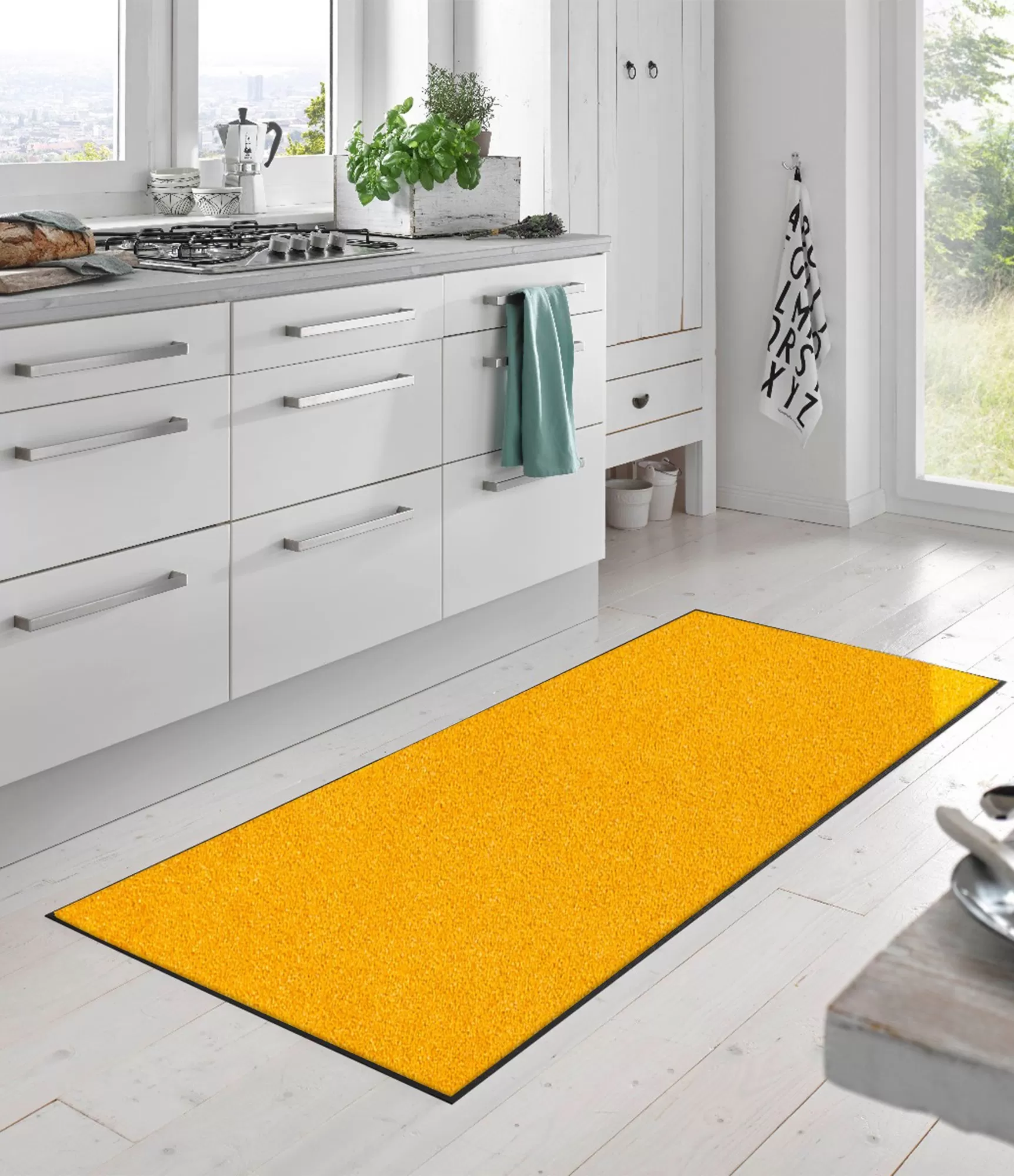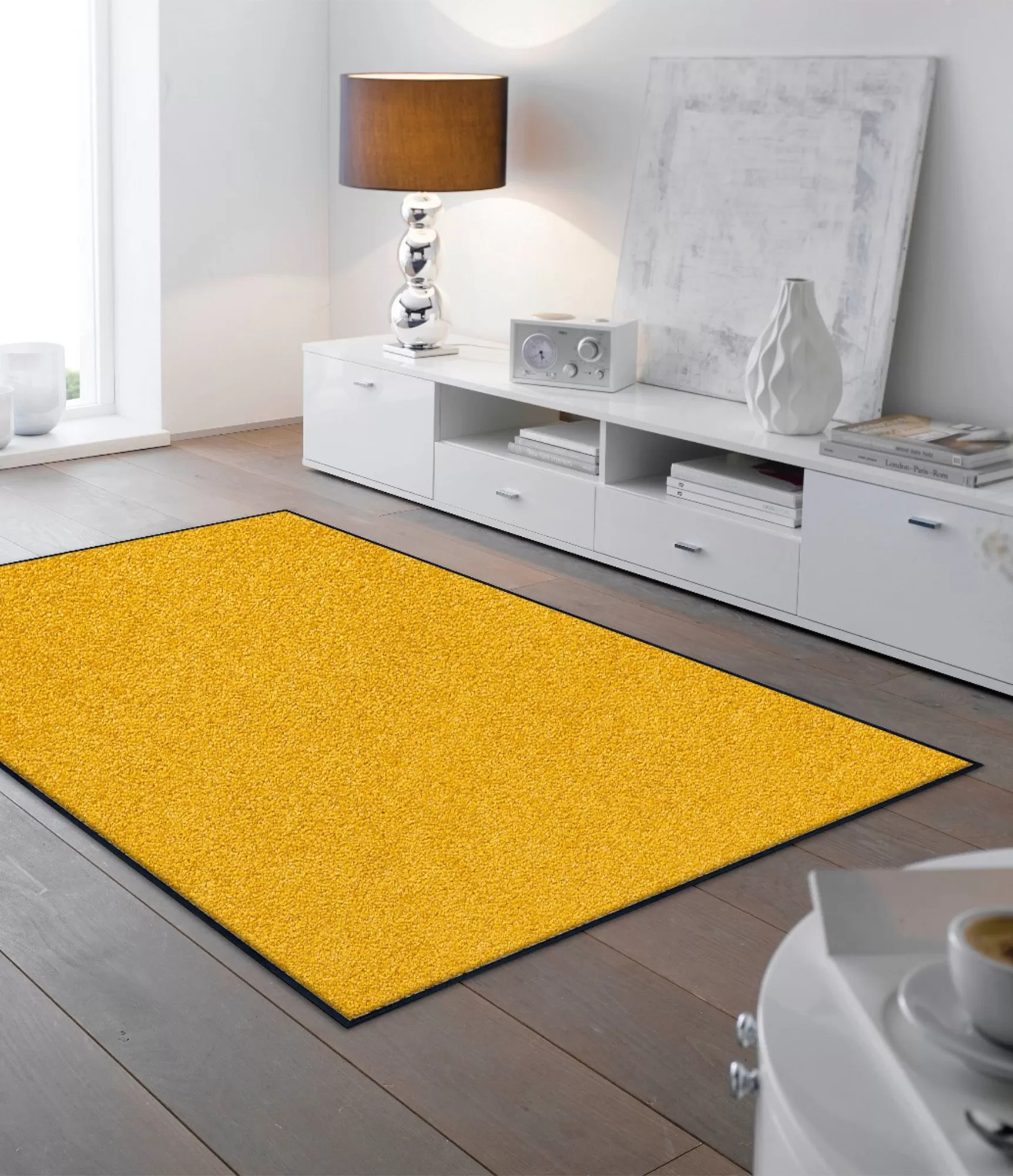 Vienkrāsaini paklāji, paklāju celiņi un durvju paklāji „Honey Gold“ izceļas ar piesātinātu, medus iedvesmotu dzelteno toni, kas acumirklī atdzīvina telpu un piešķir tai mājīgumu. Tā ir krāsa, kas rada siltuma, viesmīlības un pozitīvas noskaņas sajūtu, tāpēc lieliski piemērota mājām, kurās vēlas vairāk dzīvīguma un gaismas.