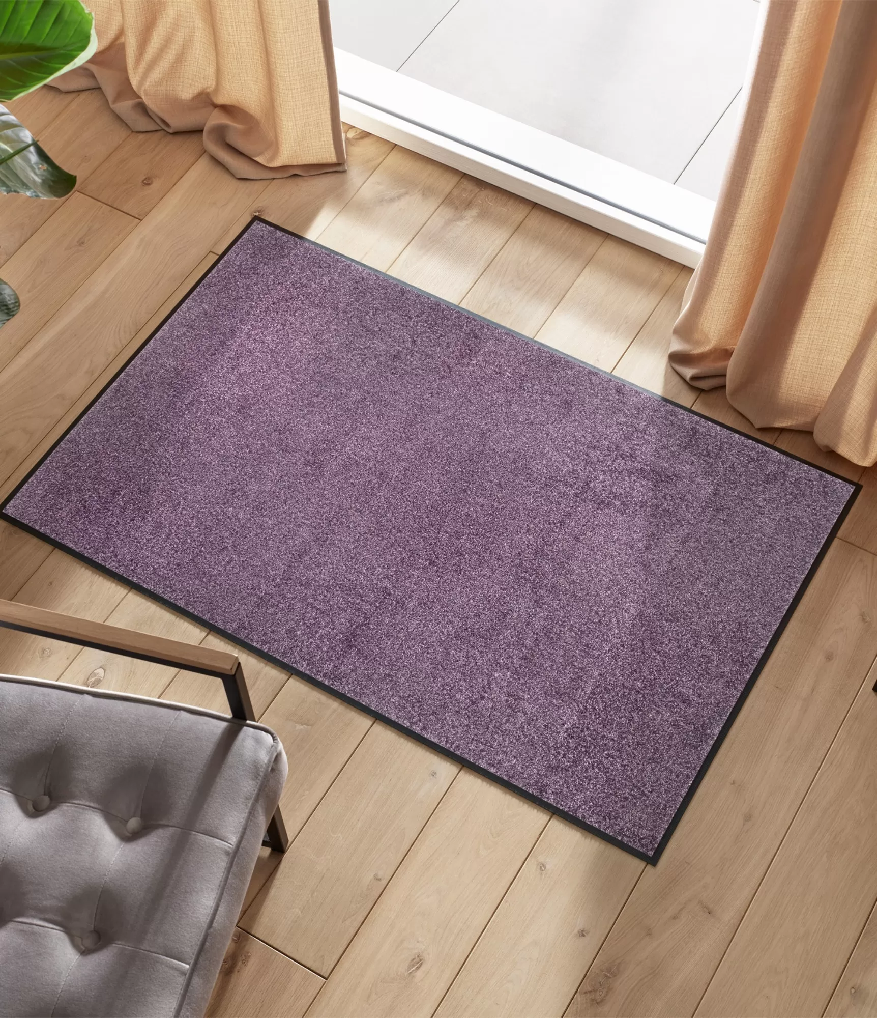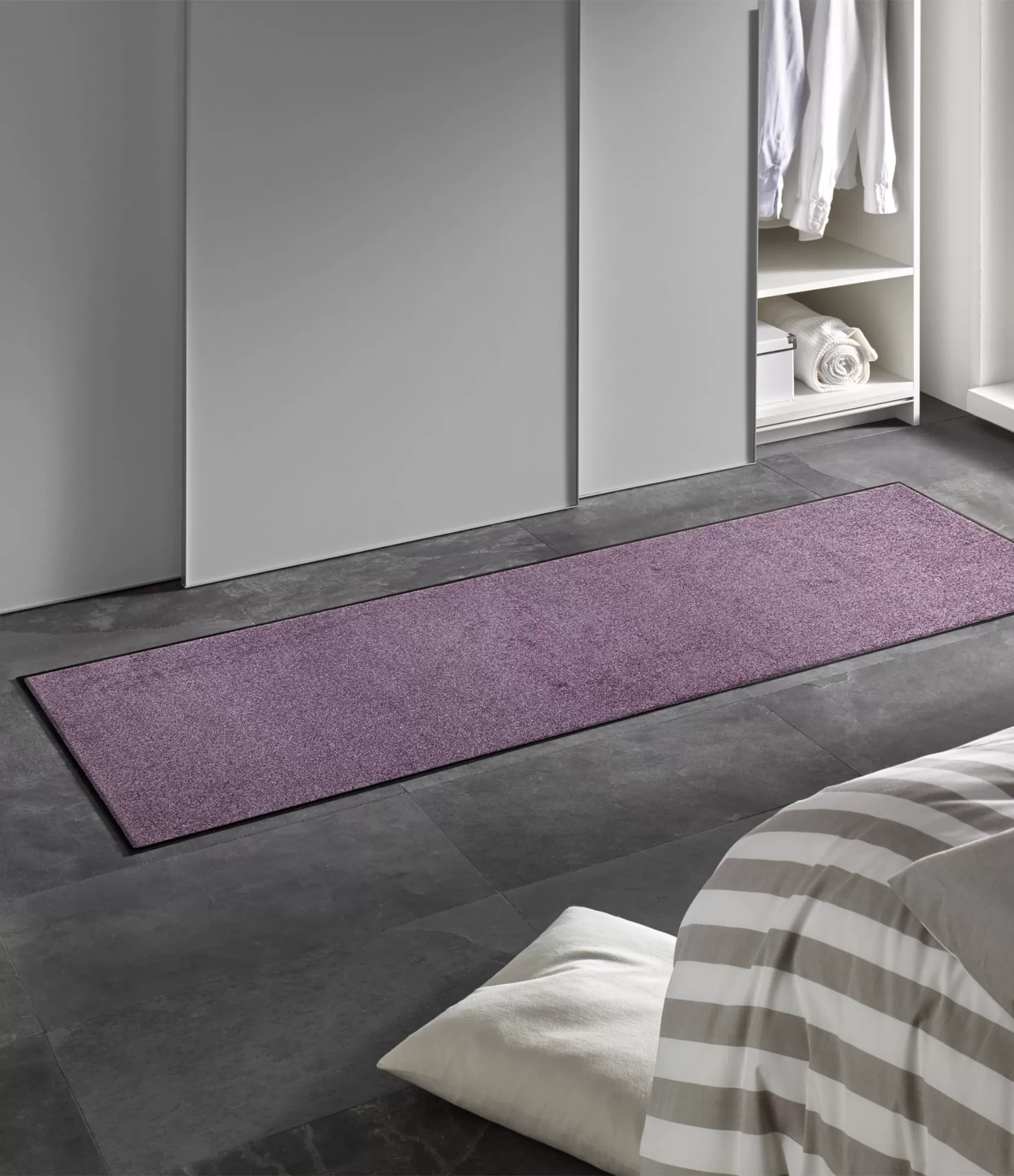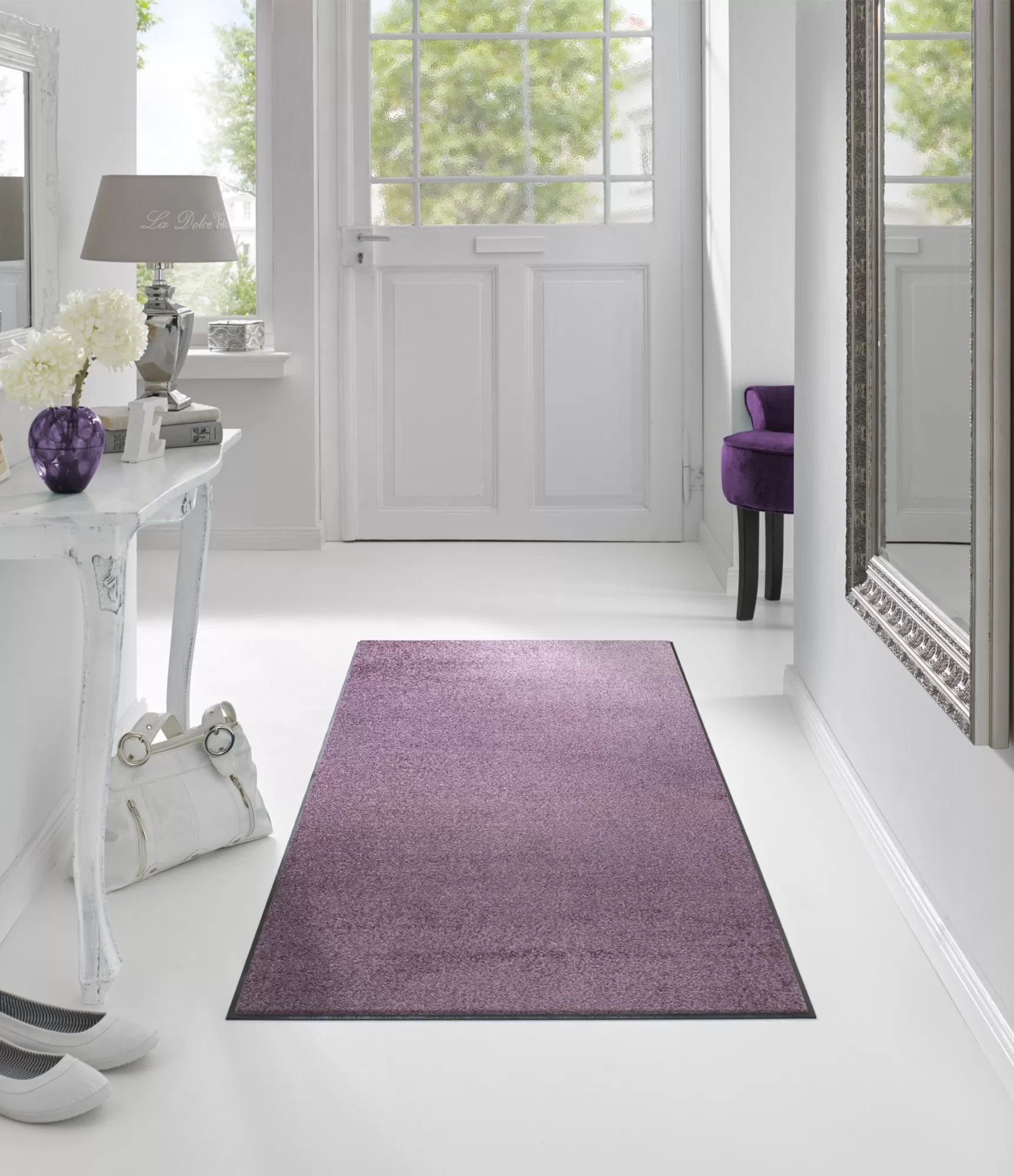 Vienkrāsains paklājs, paklāju celiņš vai durvju paklājs „Lavender Mist“ izceļas ar smalku lavandas toni, kas telpai piešķir viegluma un siltuma sajūtu. Šī maigā krāsa lieliski sader gan ar gaišiem, gan tumšākiem interjera risinājumiem, tāpēc to ir viegli pielāgot dažādām mājas zonām. Pasteļtonis rada mājīgu atmosfēru un piešķir ieejas zonai izteiksmīgumu, vienlaikus saglabājot pietiekamu neitralitāti, lai nepārslogotu kopējo skatu.