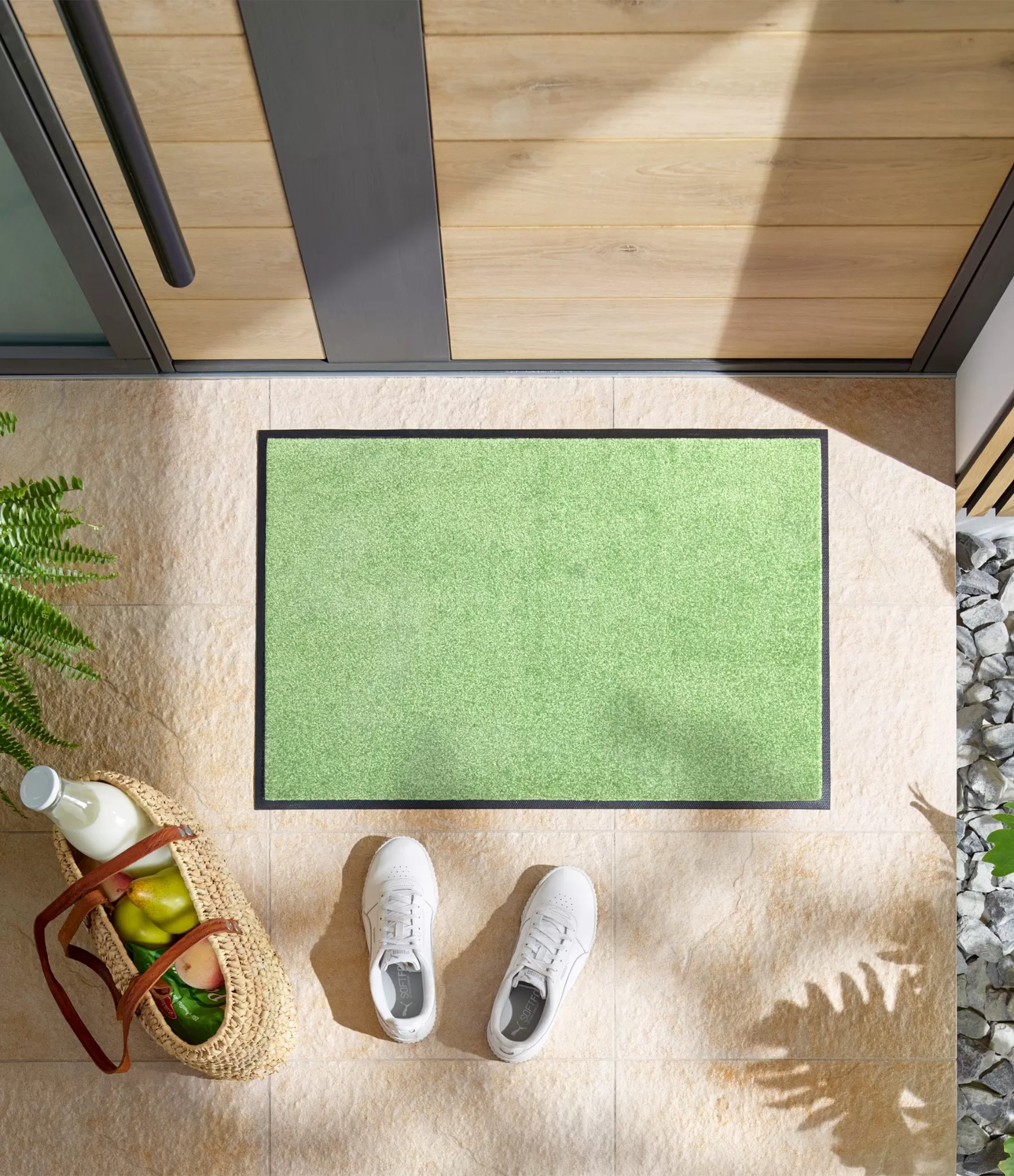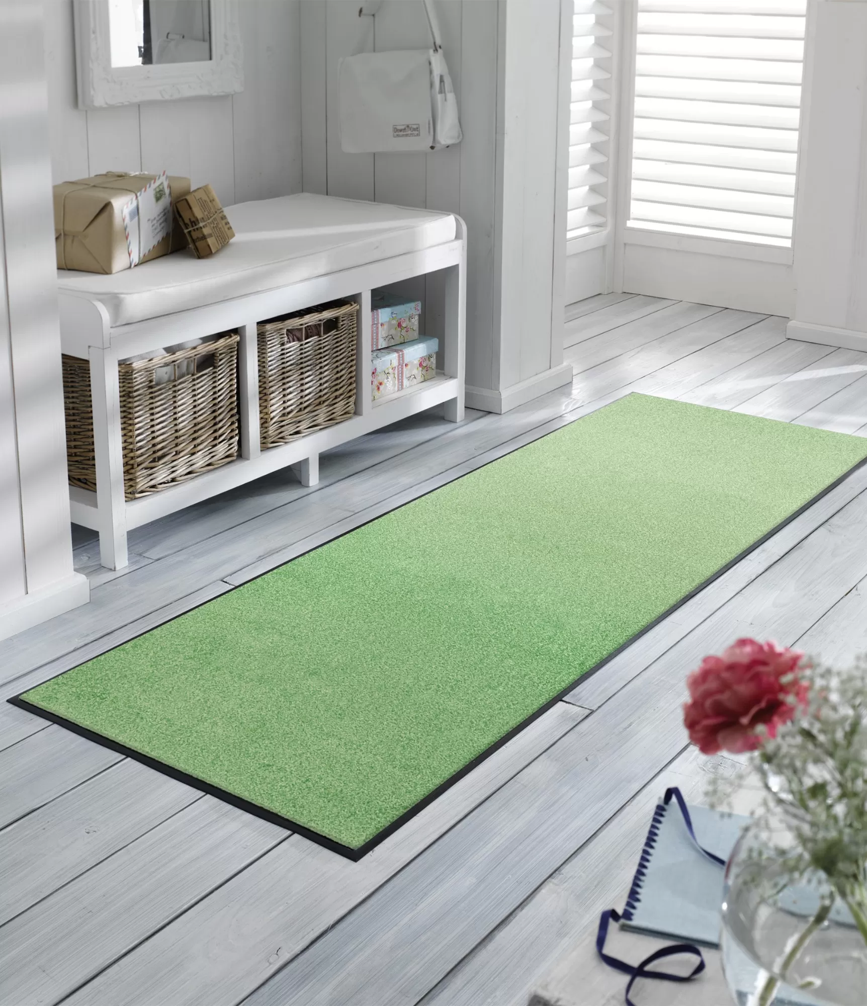 Paklājs vai durvju paklājs „Lime Lagoon“ izceļas ar spilgtu, svaigu zaļo toni, kas mājoklim piešķir enerģiju un dzīvīgumu. Šis tonis atgādina vasarīgu svaigumu un dabiskumu, tāpēc lieliski piemērots, lai atdzīvinātu ieejas zonu vai piešķirtu interjeram krāsainu akcentu. Gaišā, bet izteiksmīgā krāsa viegli kombinējama gan ar neitrāliem, gan kontrastējošiem interjera risinājumiem.